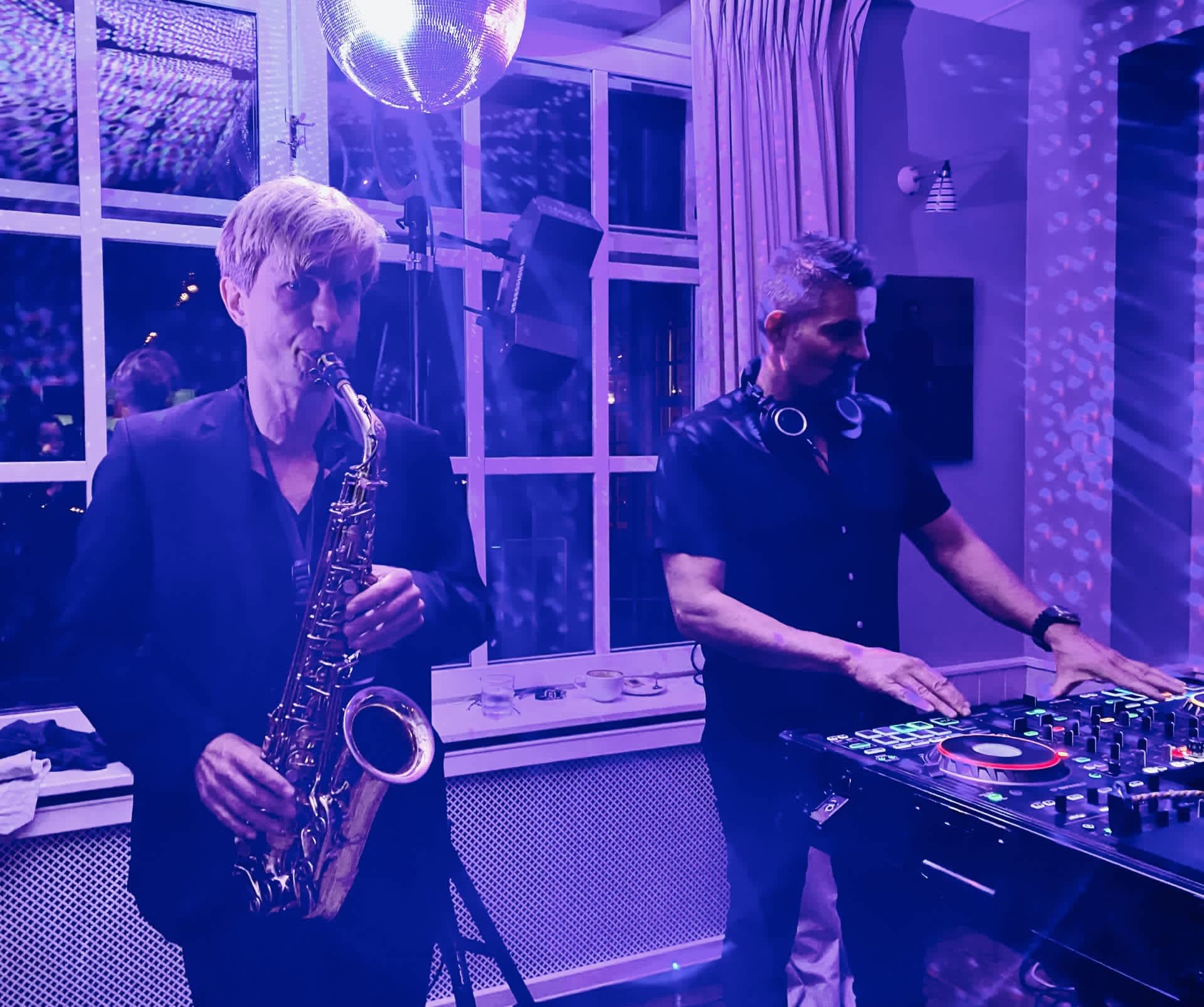 Når du booker os, får du både et top-energisk festorkester og en DJ i ét samlet tilbud. Det betyder én samlet leverandør, ét sæt udstyr og mindre besvær for dig som kunde. Du skal bare trykke på én knap – så klarer vi resten!