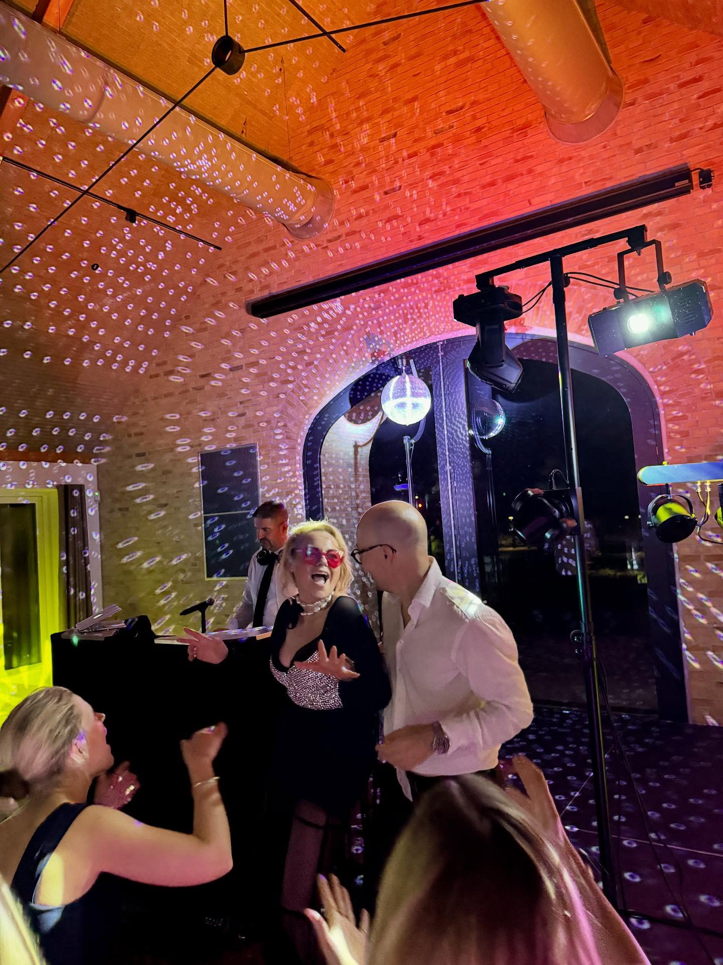 De kom til tiden, med god og afdæmpet DJ musik under middagen, og derefter senere på aftenen et fantastisk godt sammensat band med en superb forsangerinde (wow en god stemme), som bare spillede de fedeste numre for fuld udblæsning. Fuld valuta for pengene, de er bare godt givet ud. Bestemt ikke sidste gang jeg har valgt dem.