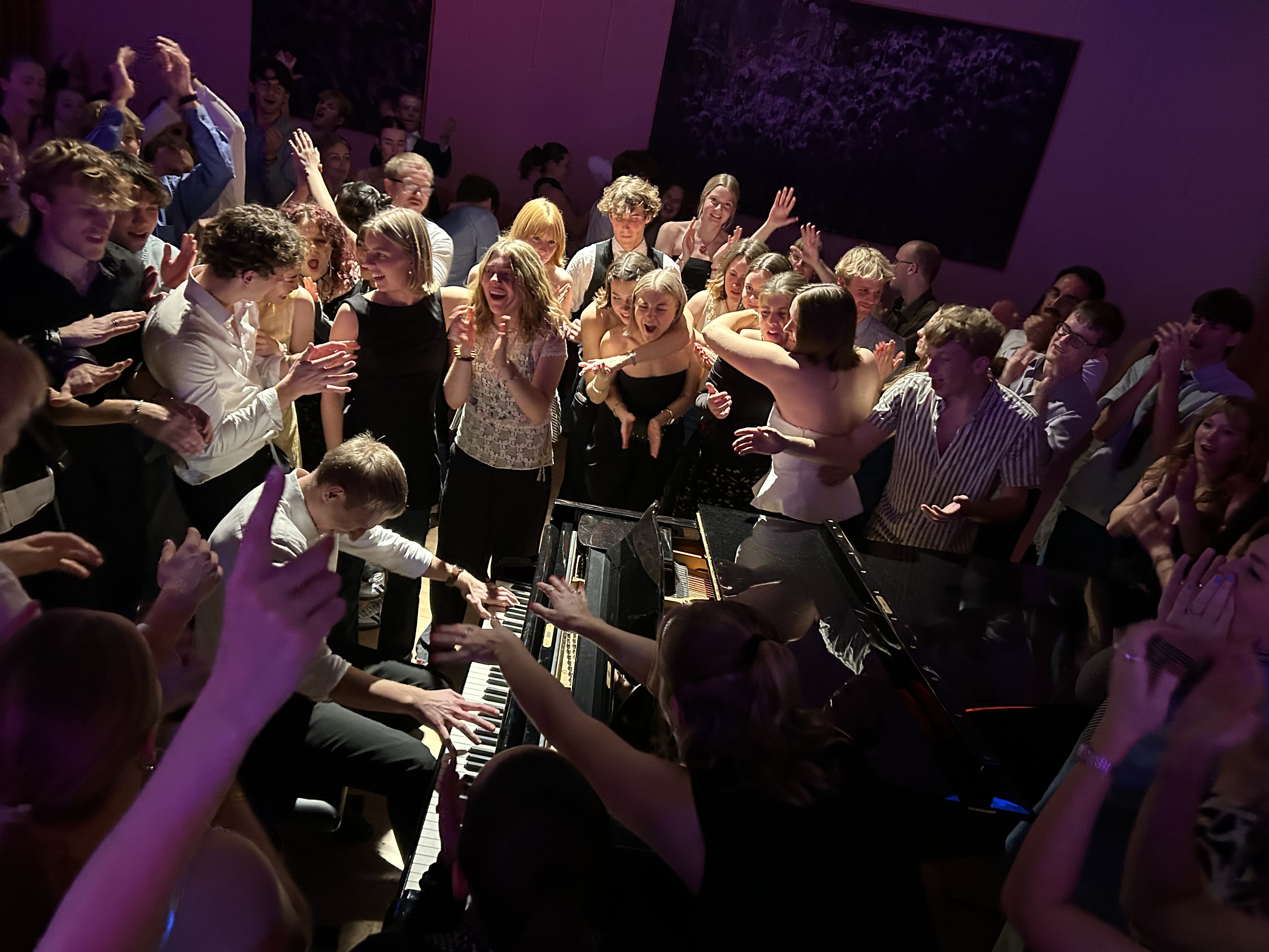 Anton er en ung særdeles sympatisk og nærværende pianist, og han tilpasser lydstyrken, så man fint kan føre en samtale.