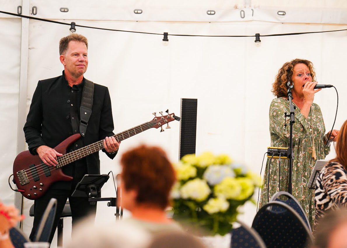 Duo med vokal + bas + backing tracks leverer dansemusik og dejlige ballader til bryllupsreception, fødselsdagsfest, konfirmation, dinnermusik, café m. spisende gæster, julefrokost, julemarked mm. g dansemusik som f.x. September, Love is in the air, Vågner i natten, Magi i luften, Elsk mig i nat etc. blandet med behagelig sofistikeret loungemusik.