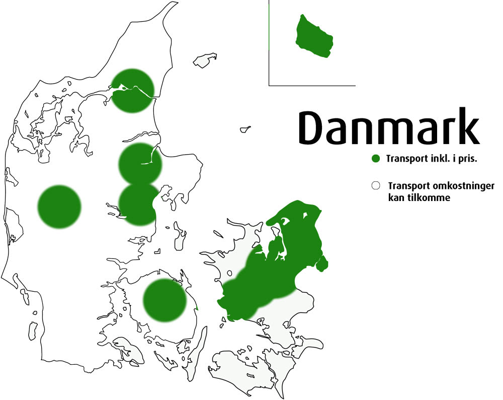 Udenfor det grønne område tilkommer der transport omkostninger.
