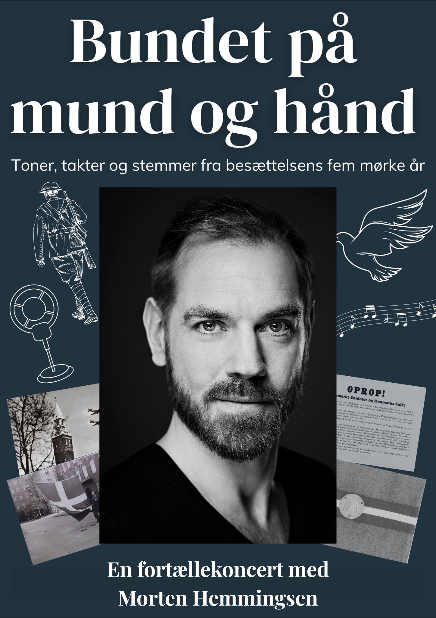 ‘Bundet på mund og hånd’ er et musikalsk foredrag, der kaster et nyt og nuanceret lys på de forskellige kunstneriske udtryksformer under den tyske besættelse af Danmark. Vi får et unikt indblik i musikkens betydning for fællesskabet og modstandskampen.