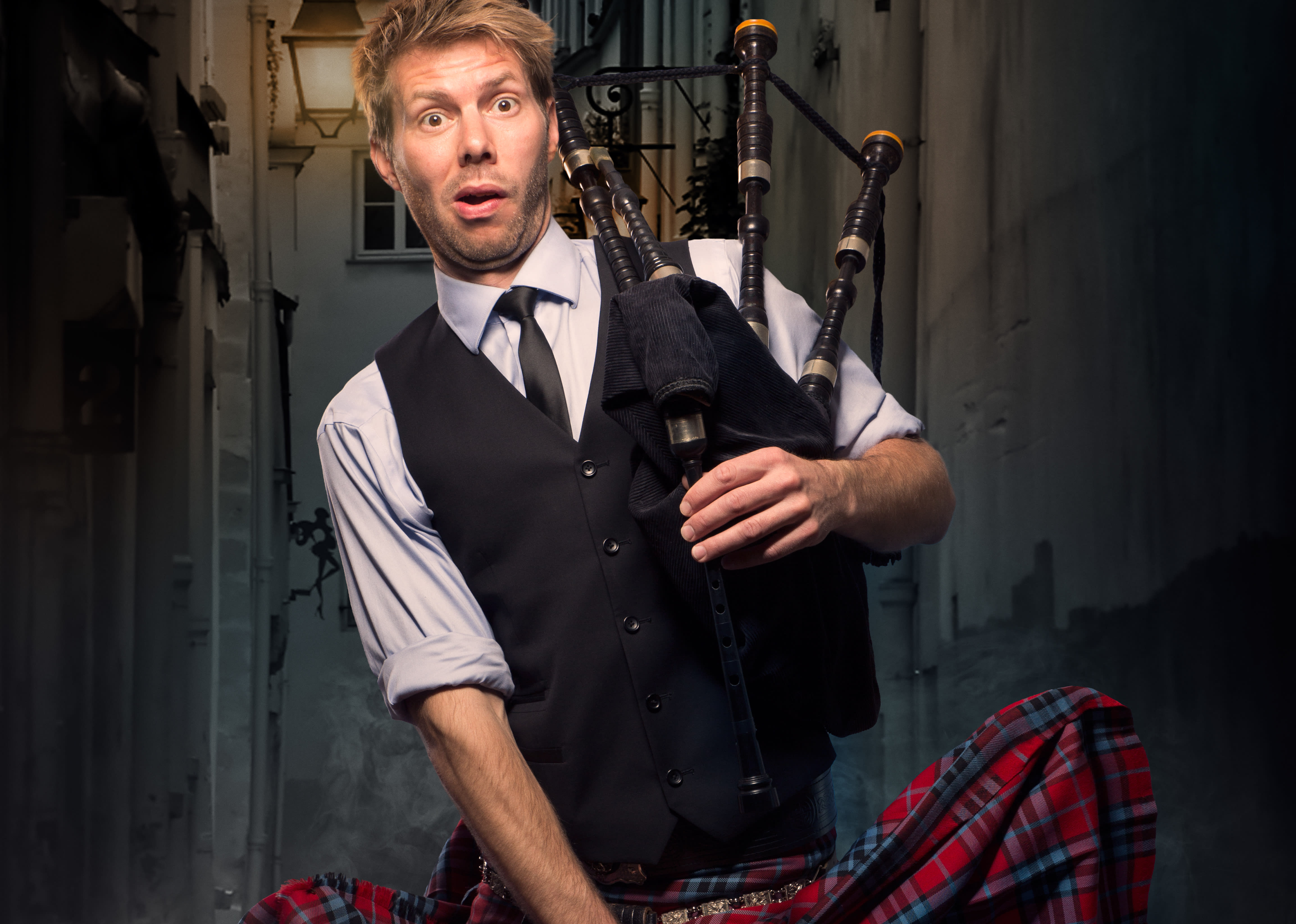 Claus leverer et uhøjtideligt comedy show, der er proppet med geniale jokes om sækkepiben, hans uheldige oplevelser og den skotske uniform sammensat med kendte melodier.