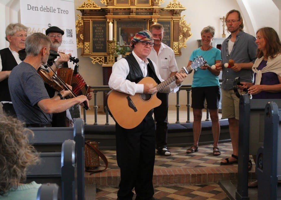Christian har et fantastisk humør og sammen med Den Debile Treo sætter de alle i godt humør. De kombinerer levende musik og godt gammeldags sjov. Deres repertoire dækker alt fra folkemusik til kunstnerer som Kim Larsen og John Mogensen. Vi havde en dejlig underholdende eftermiddag og mange meddelte, at de gerne ville høre dem igen. Tusind tak for en underholdende eftermiddag.