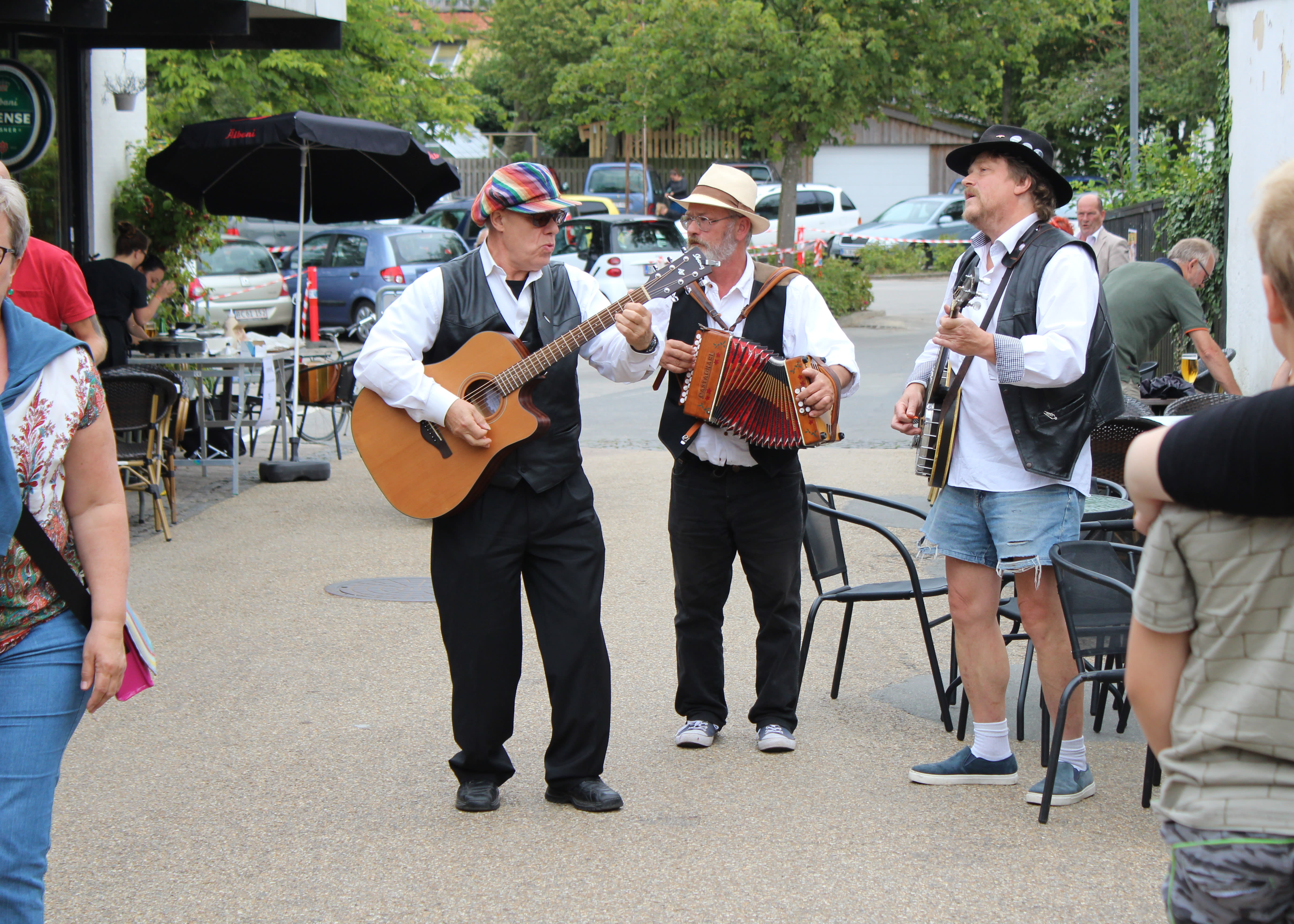 Traditionelle spillemænd af bedste skuffe. Lynhurtig reaktion på vores forespørgsel, og en god snak om vores arrangement - en 50års fødselsdag. De læste hurtigt selskabet og fik hurtigt dyrket en rigtig god stemning. En blanding af dansk, irsk, skotsk og meget andet fik gæsterne i godt humør til både fællessang og spil-med ved deres lille lager af ekstra instrumenter. Spontanitet, humor, nærvær og festlig musik.