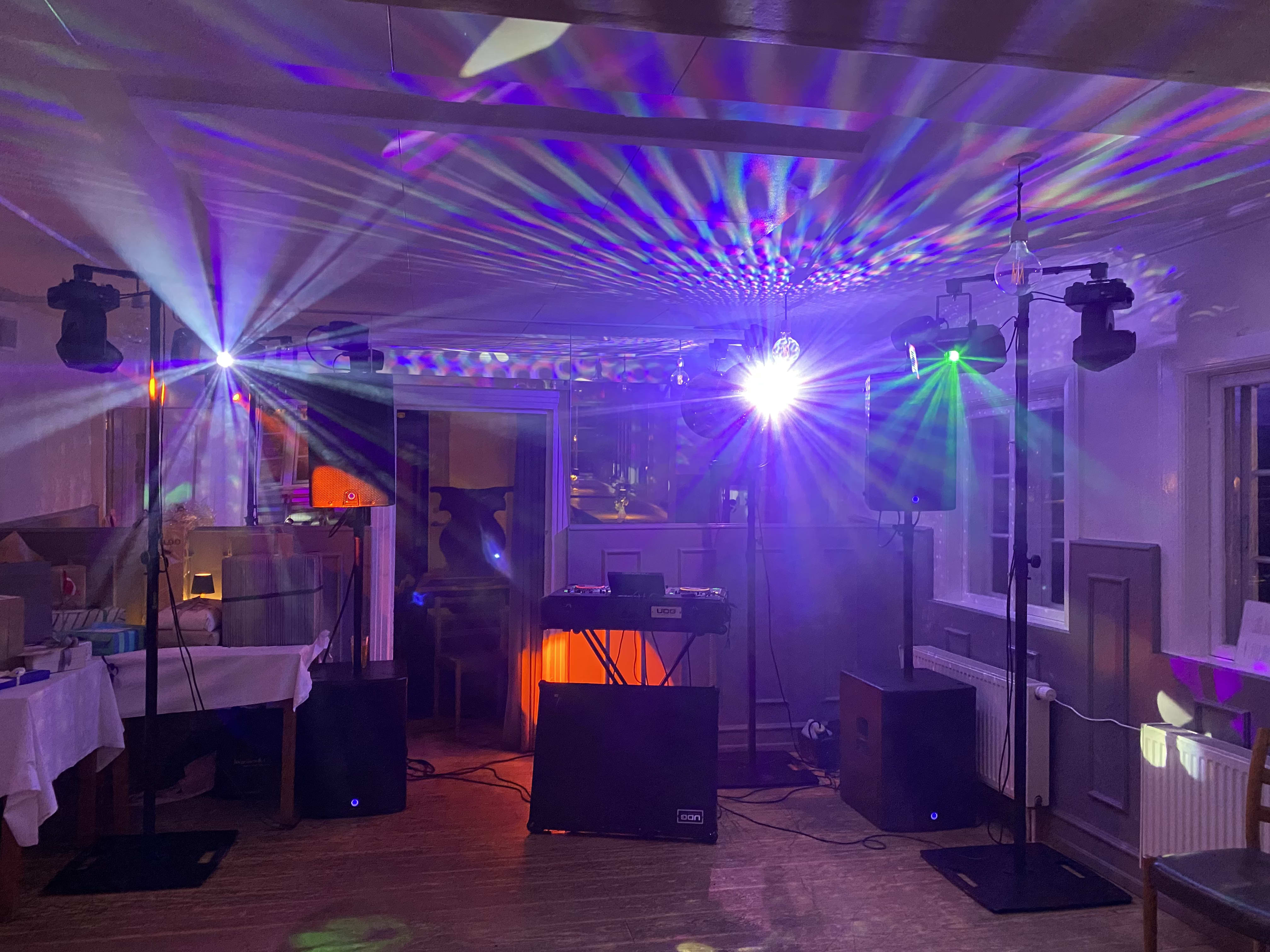 Jeg har masser af lys & effekter. Som blandt andet inkludere stor diskokugle (med eget special stativ / ophæng) med 2 kraftige spots på der giver en helt fantastisk effekt og stemning. Jeg leverer desuden også lys til mere end selve dansegulvet. Feks. er det meget populært med up lights langs vægge i ellers farveløse fest sale osv.