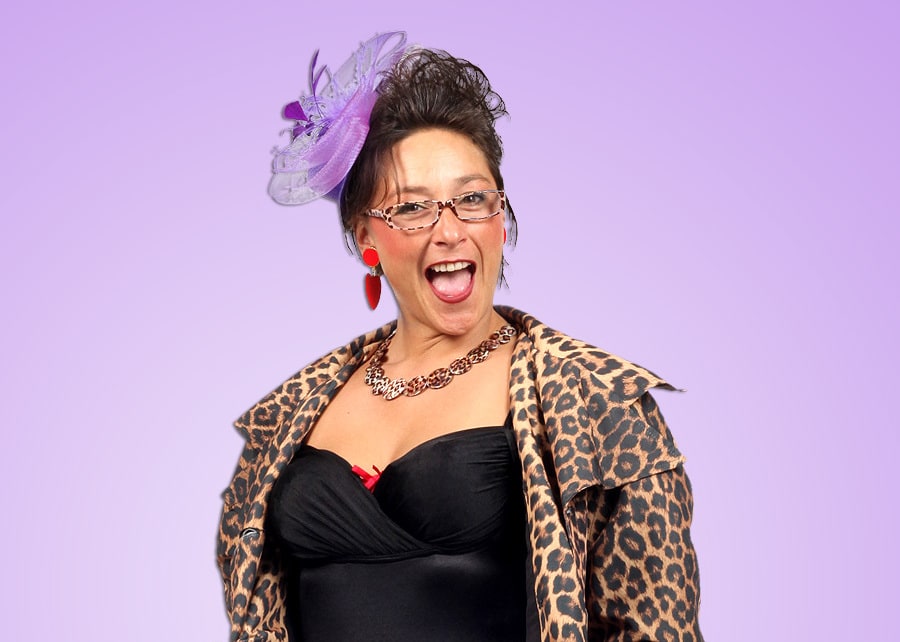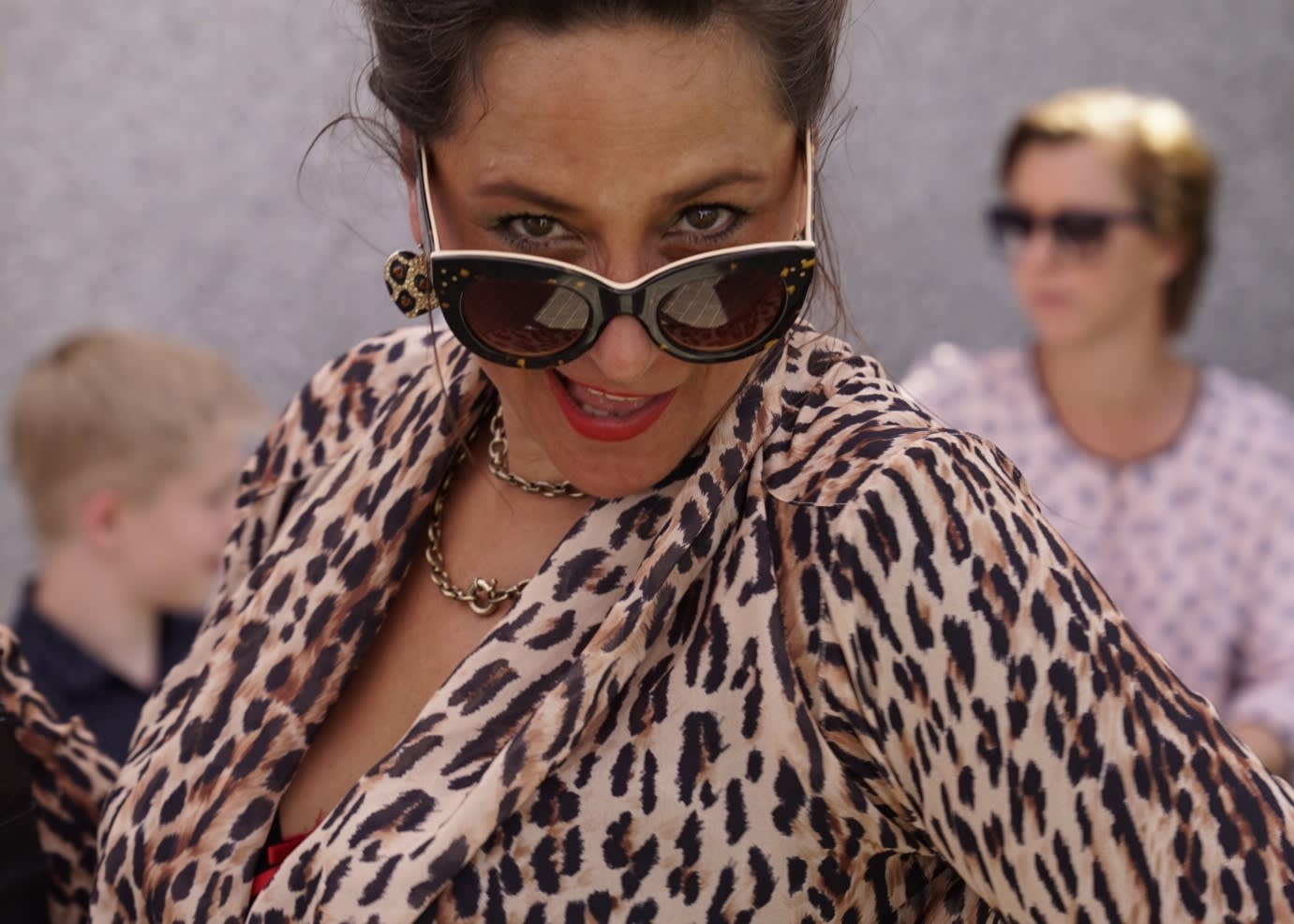 Kirsten, blandt venner kendt som ”Kisser” ankommer til festen, i leopard dress og .