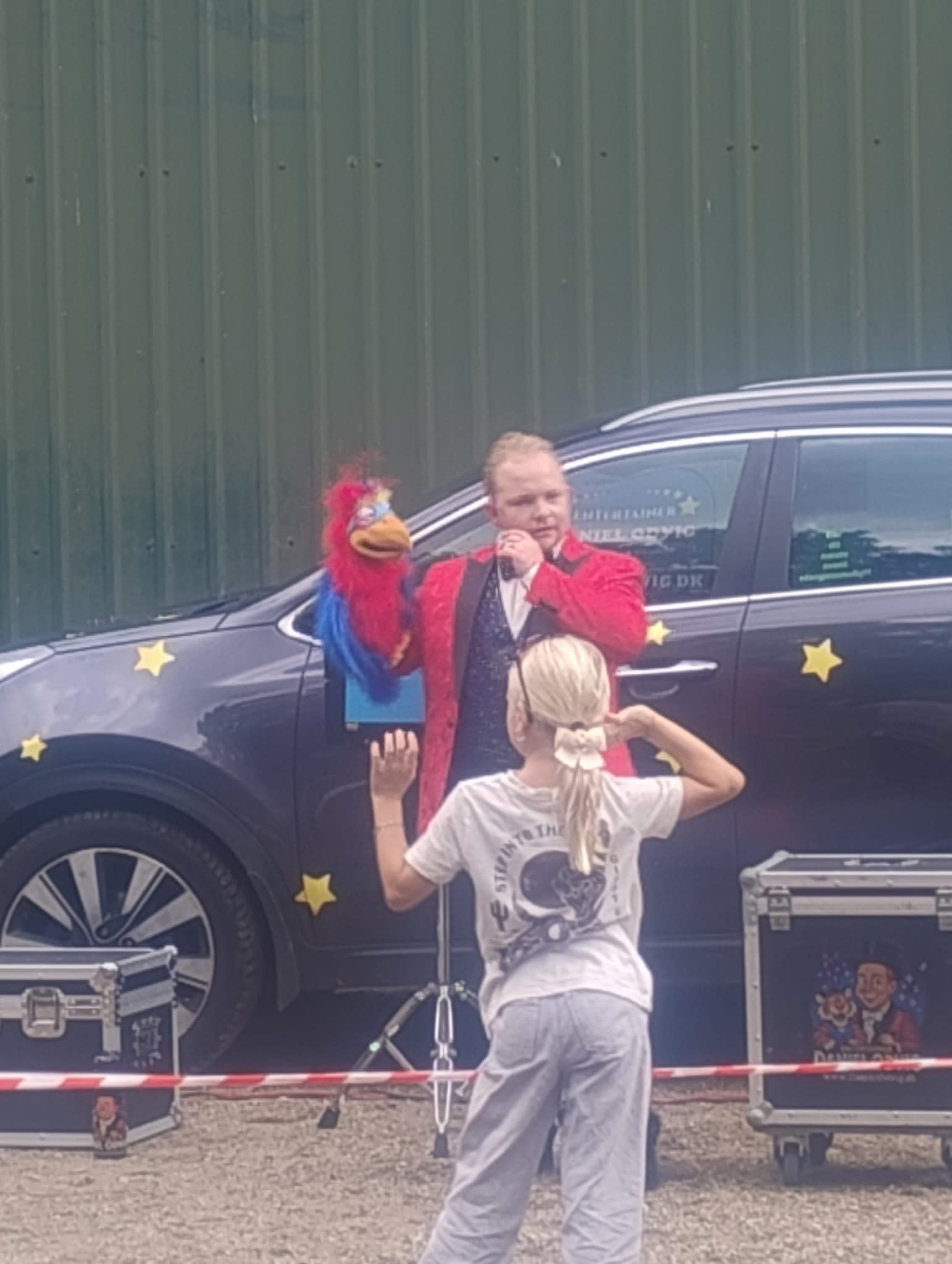 Et lille sjovt indslag for børnene, blev hurtigt til dagens store samtaleemne, da Daniel og hans venner kom forbi vores byfest, og underholdt, ikke bare børnene, men også voksne med velgennemtænkt sjov og ballade.