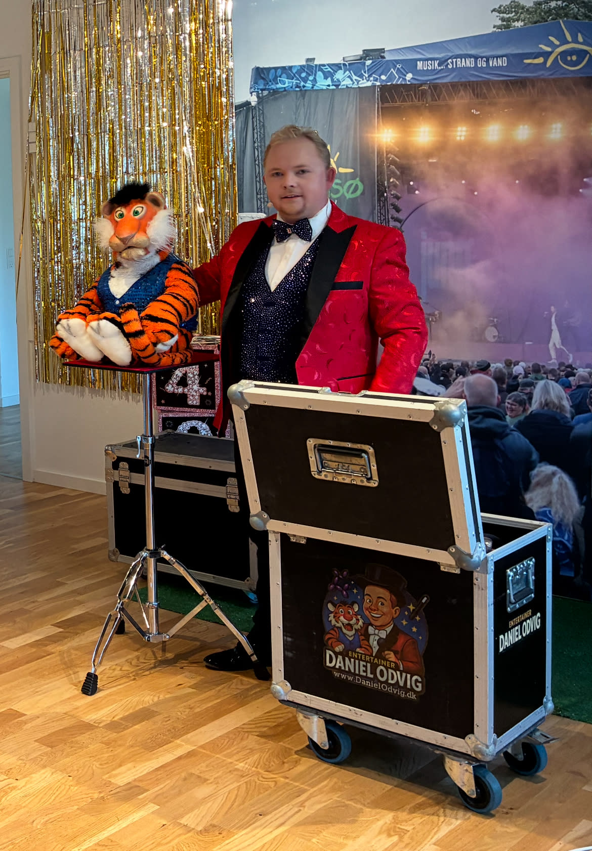 Daniel Odvig er en erfaren entertainer, der med sit varme nærvær, sit skarpe publikumstække og sin professionalisme skaber et show, hvor alle føler sig inkluderet og underholdt. Fra det øjeblik han træder på scenen, fyldes rummet med latter, spænding og ægte familiehygge.