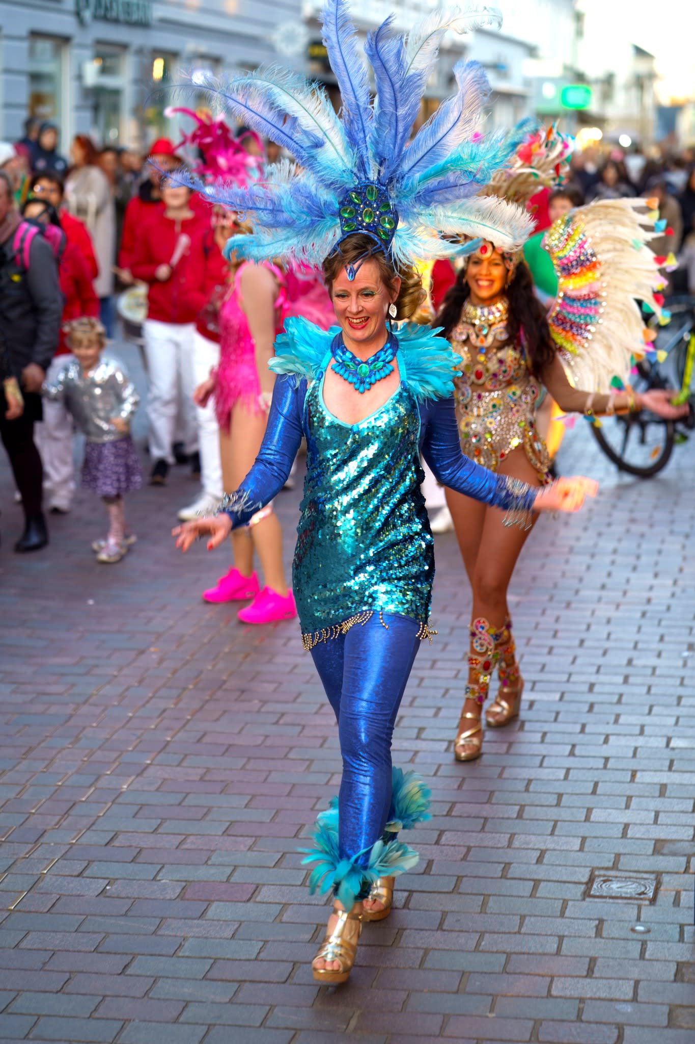 Dansegruppe der kan få folk op af stolene med farver, fjer og pailletter. Vi tilbyder små og store danseshows.