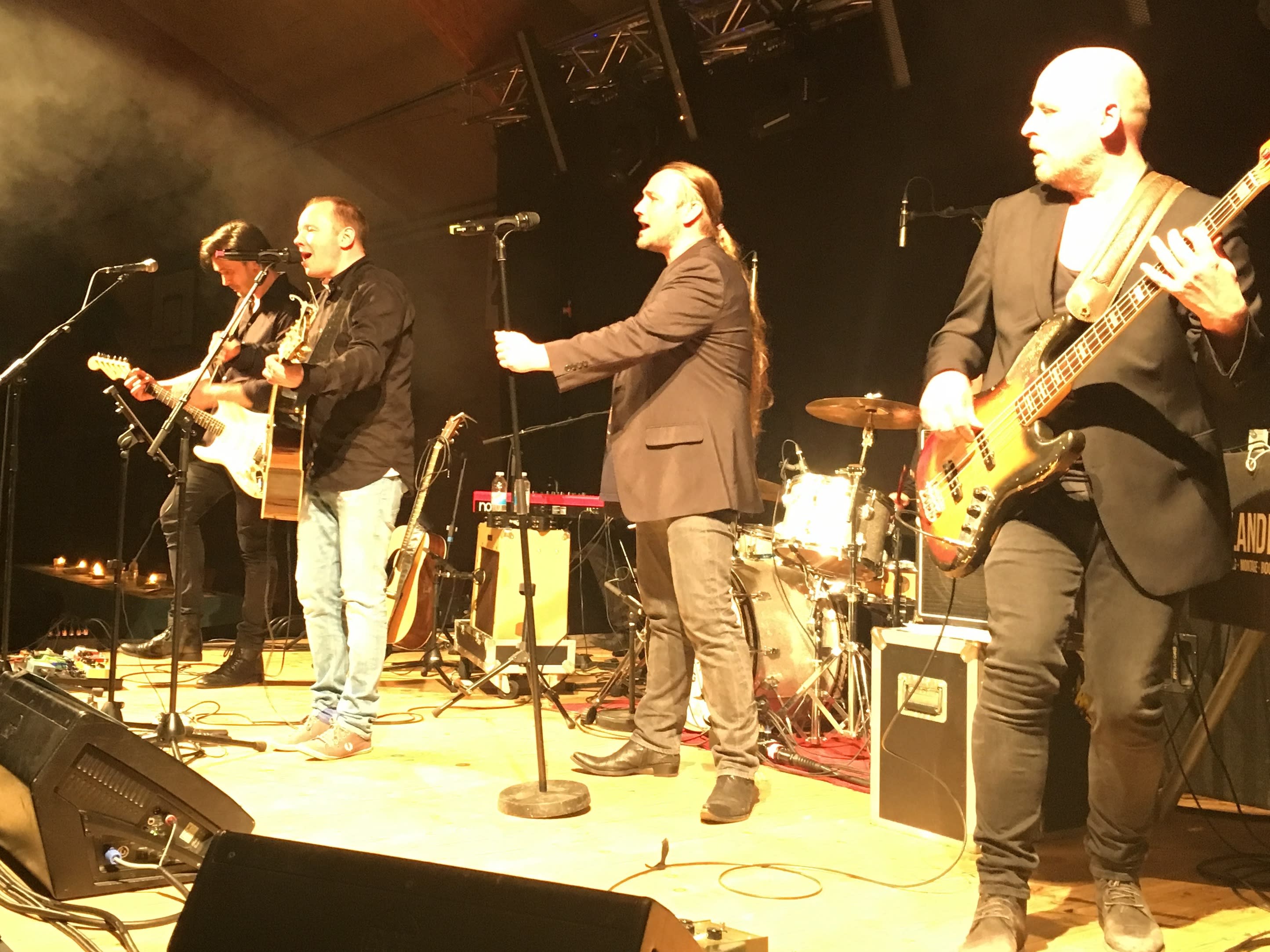 Den ene forsanger Dan Hougesen som en karismatisk frontfigur i rockbandet “Natural Born Hippies”, og med en fantastisk stemme.