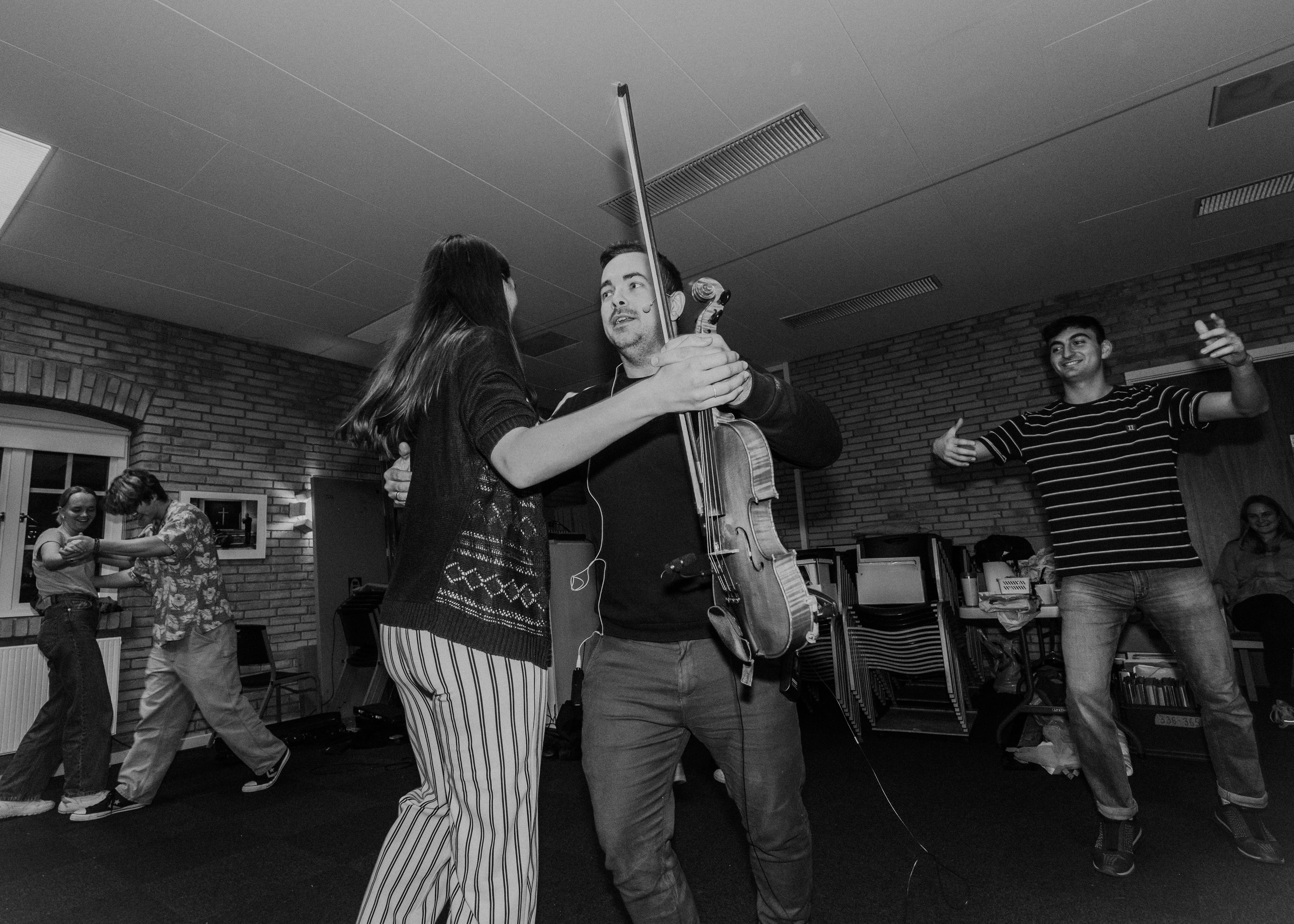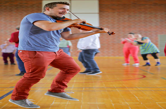 Frederik underviser i folkedans til fest, bryllupper, polterabend, julefrokoster, konfirmationer og fødselsdage, mens han selv spiller op på sin violin. Det er altid en festlig start på en god fest og en genial måde at få rystet gæsterne sammen på.