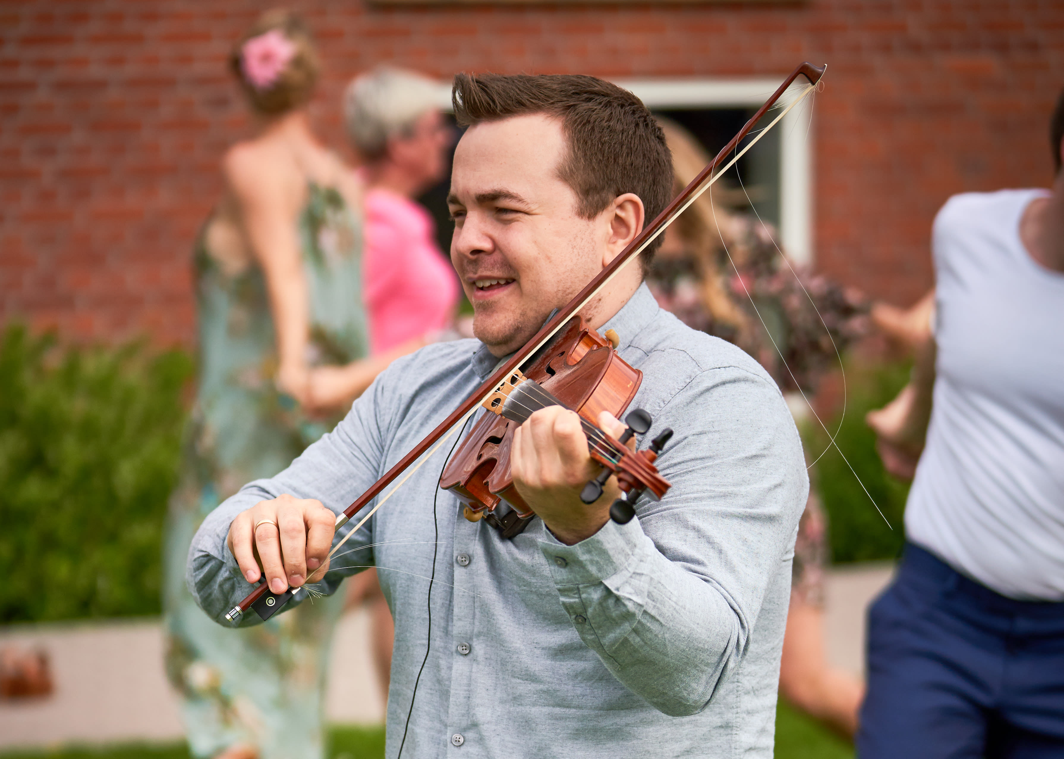 Vi havde den store fornøjelse at have Frederik til at lede folkedans med alle vores gæster til vores bryllup, og det blev et af festens absolutte højdepunkter.