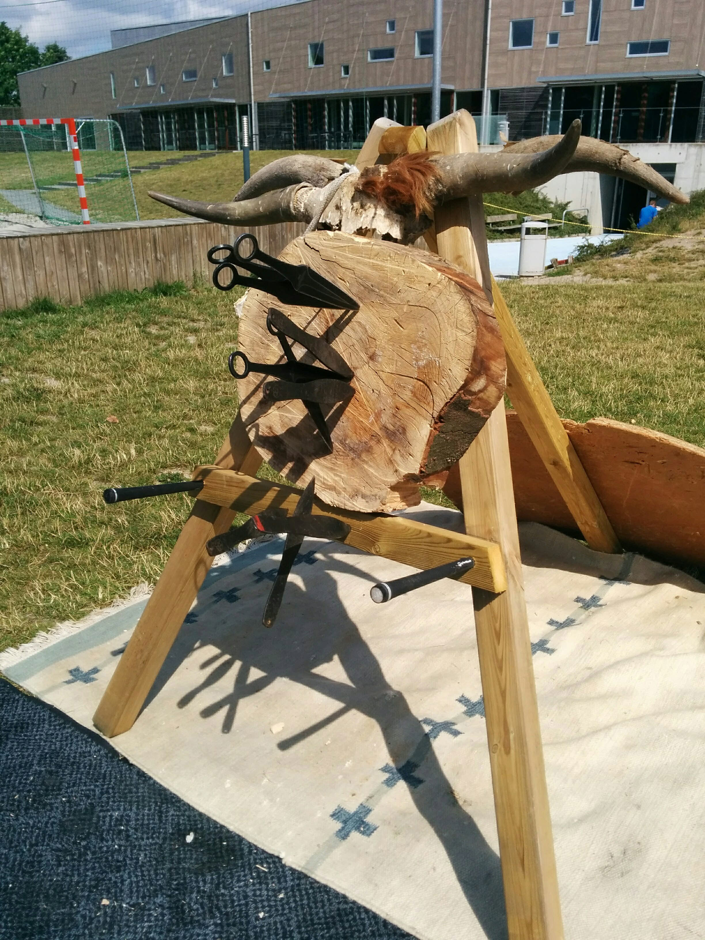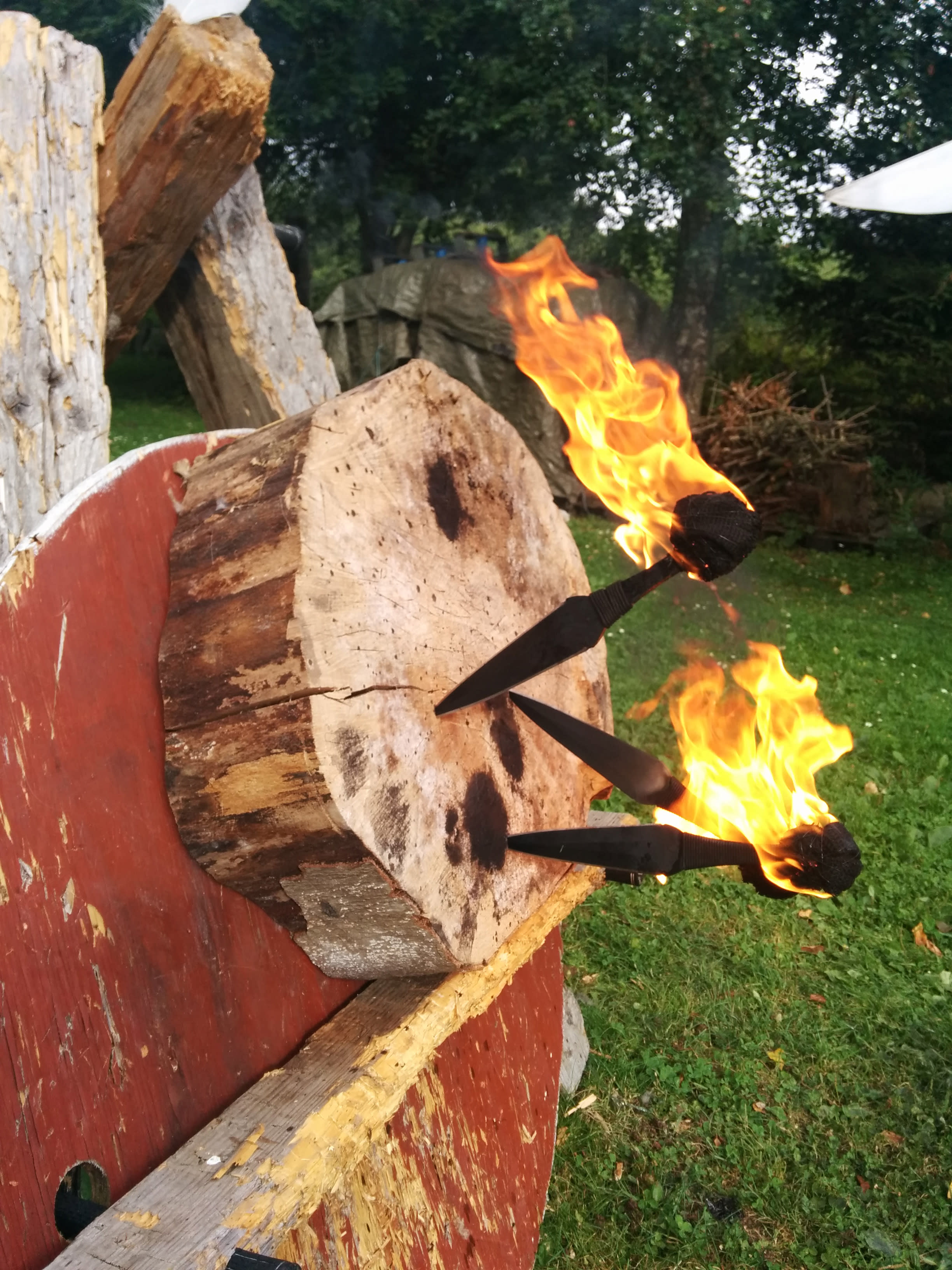 Publikum får adgang til forskellige typer kasteknive og økser på bord i gruppe på 5 styks. pr. gang indenfor indhegningen. Der kastes mod træklods på træfod i afstand fra 4m til 8m. Der er opstillet 1-4 træklodser på linje med afstand imellem, afhængig af antal publikum til eventen.