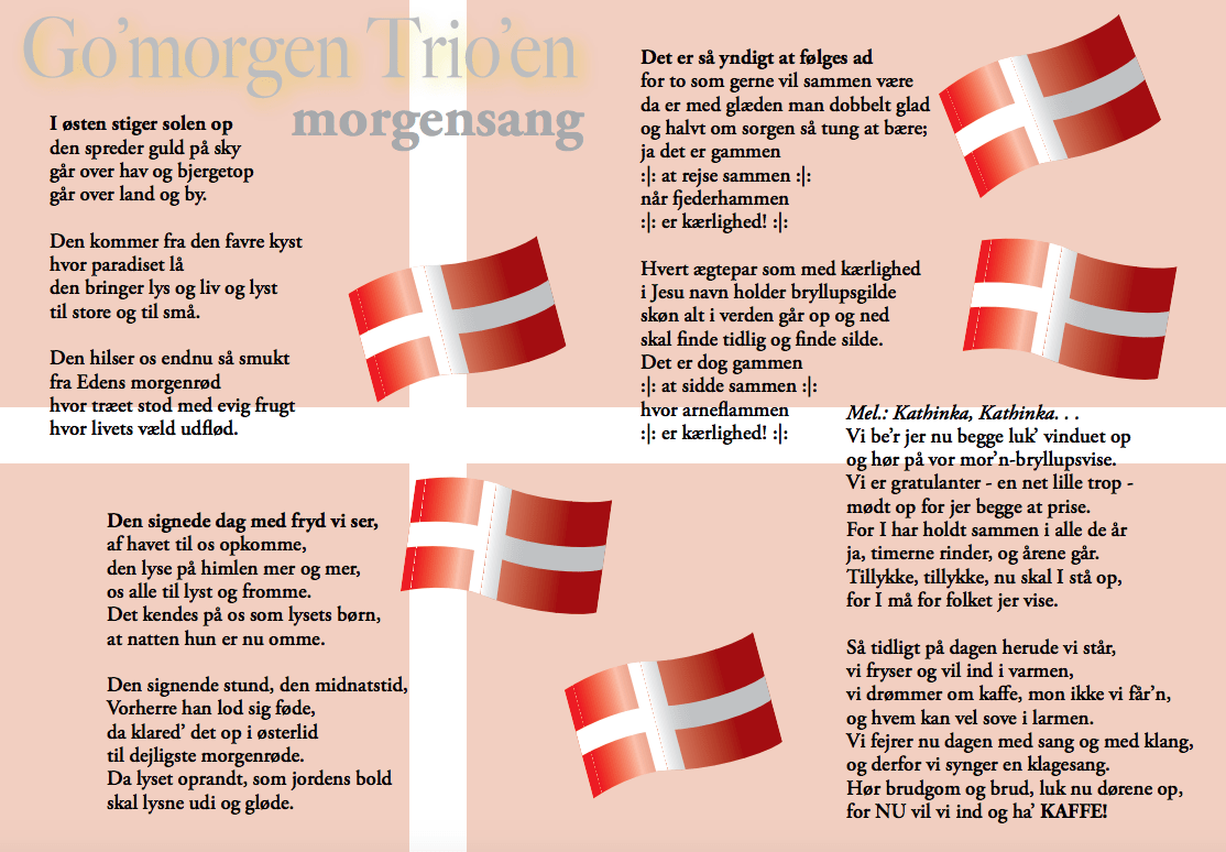 Go' Morgen Trioen spiller festlig morgenmusik i Aalborg og omegn til kobberbryllup, sølvbryllup, guldbryllup, fødselsdage og andre festlige lejligheder