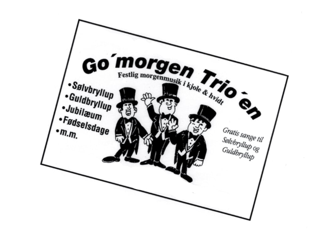 Vi fandt Go'Morgen Trioen til vores sølvbryllup, og vi har kun ros for samarbejdet med trioen og kan varmt anbefale dem til andre her i Nordjylland, idet de var festlige og bibragte rigtig god stemning.