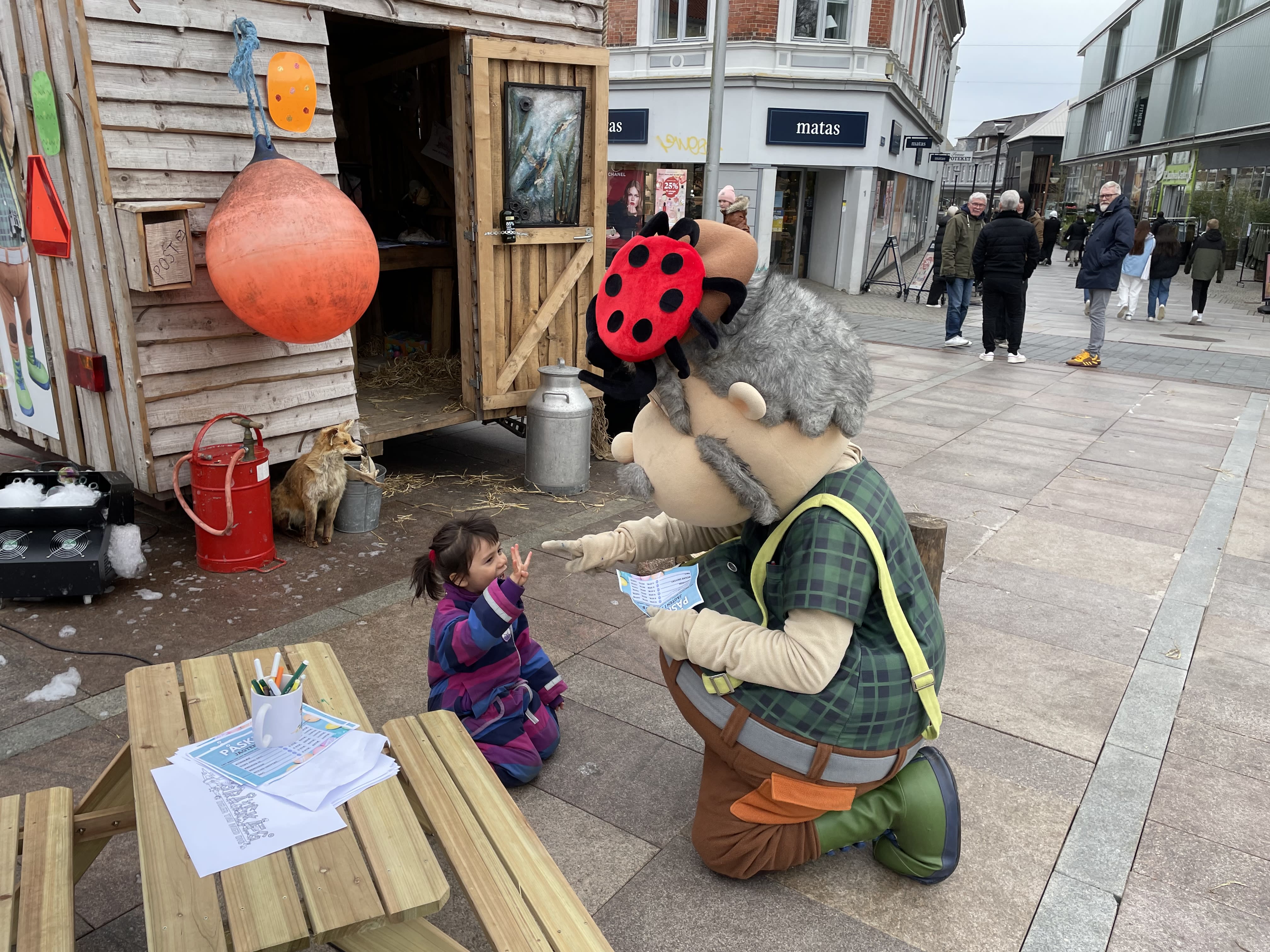 Det var stor succes at have besøg af Gråskæg. Både børn og voksne morede sig.