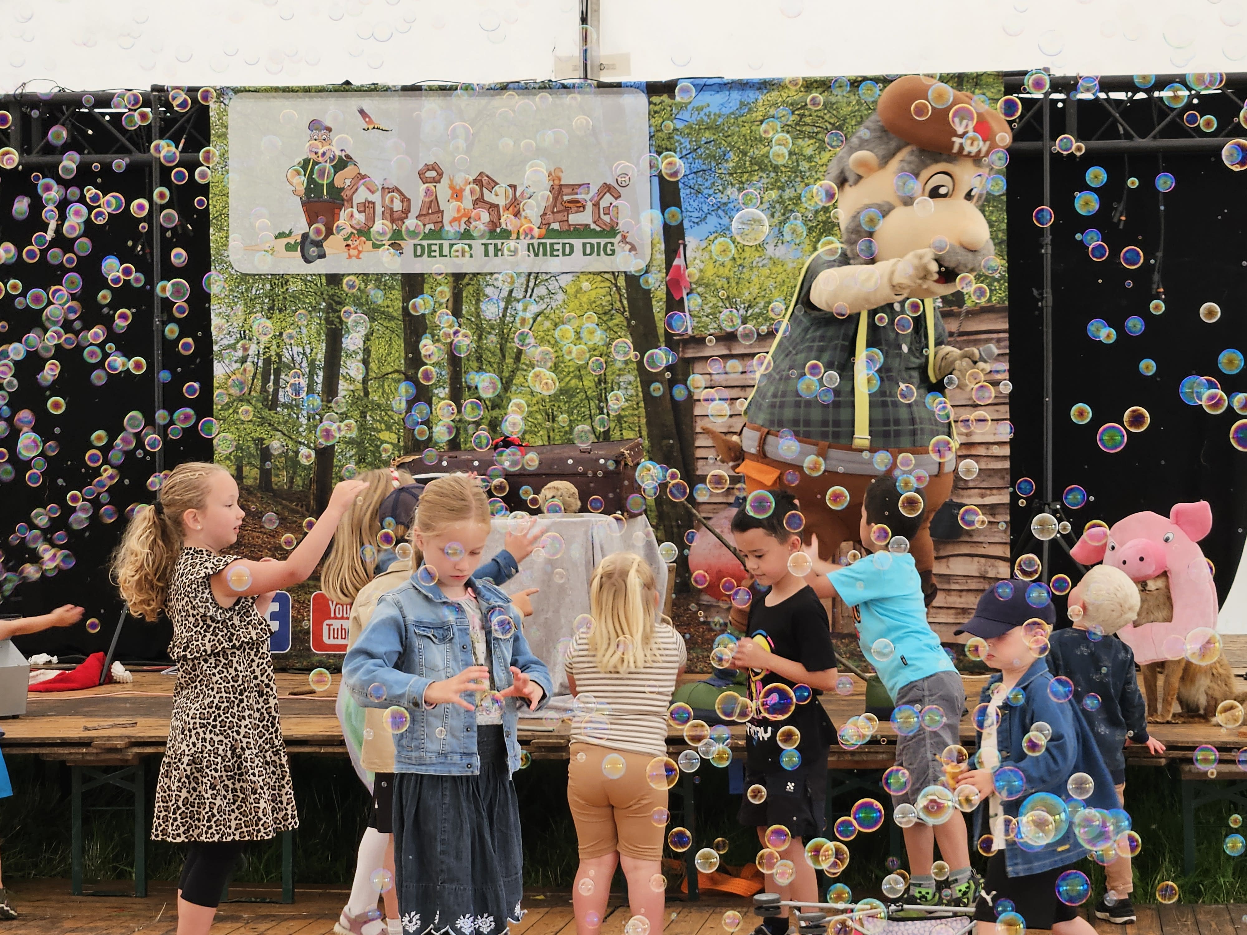 Gør din næste fest uforglemmelig med GråSkæg, som medbringer alle sine skovdyr 🦊🦌 og magiske sæbebobler 🫧! GråSkæg leverer et fortryllende show med sit professionelle musikanlæg 🎶, der får både børn og voksne til at blive opslugt af hans finurlige væsen.