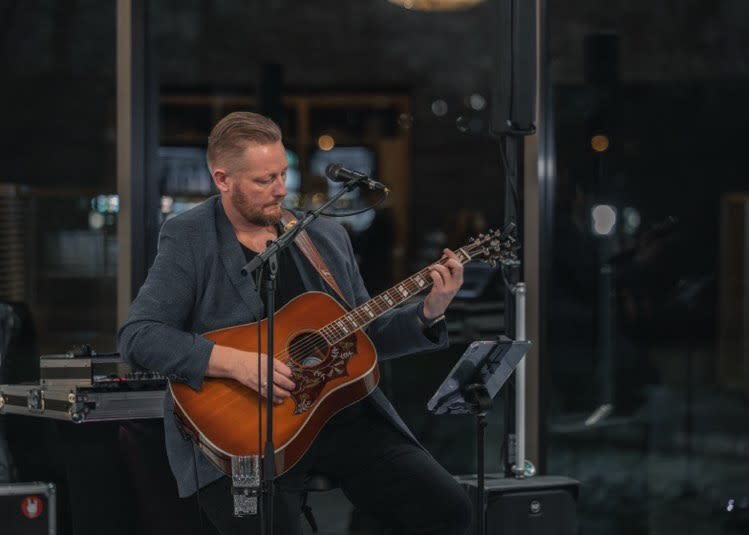 Han spillede guitar, mens gæsterne ankom. Det gav en god stemning.