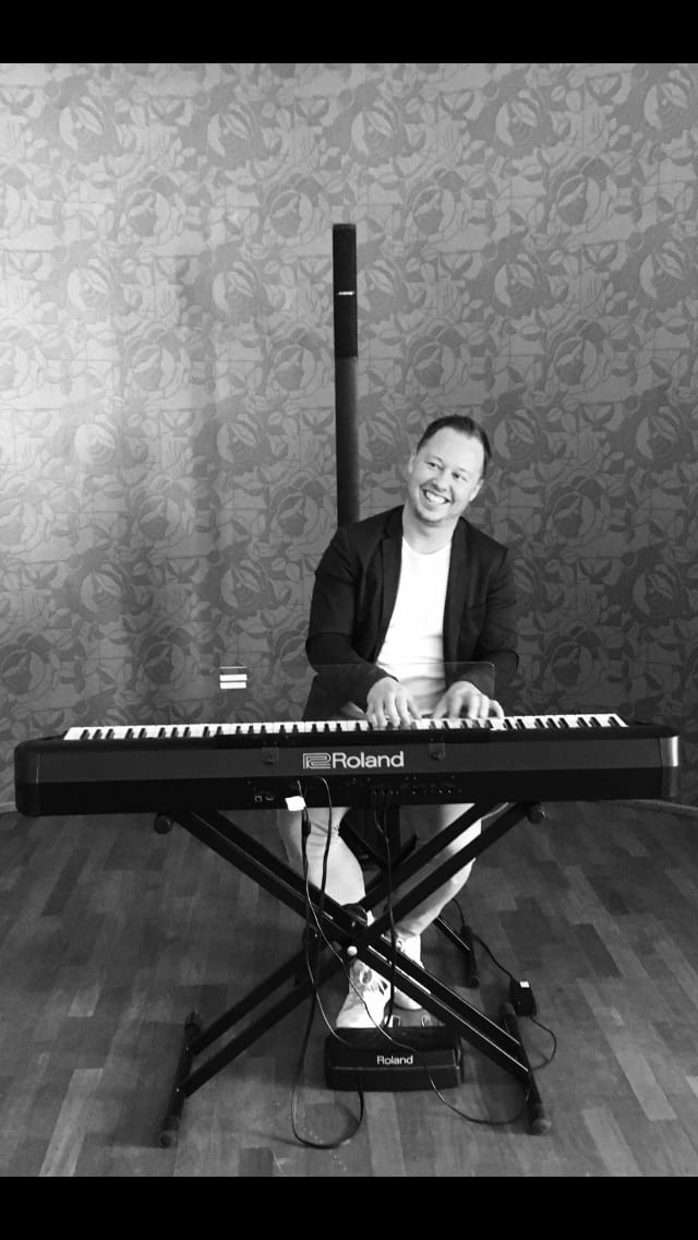 Henrik Hansen var meget sød og professionel pianist. Han havde øjenkontakt med brudeparret og toastmaster, og hele selskabet var underholdt med en god musik.