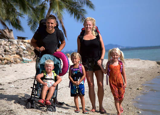 Da hamsterhjulet løb for hurtigt for Nana og Sune og deres tre børn, traf de et stort valg: De købte en enkeltbillet til Bangkok, solgte deres hus og bil og tog afsted uden at vide, hvad fremtiden måtte bringe. I dette foredrag fortæller de om det store valg, de mange faser som de kom igennem og om at rejse med små børn (2, 4 og 5 år). Nana og Sune er ærlige, hjertelige, åbne, selvironiske og humoristiske i deres fremtoning og blander videodagbog med levende beretning, som uundgåeligt presser tårerne frem under de følsomme passager.