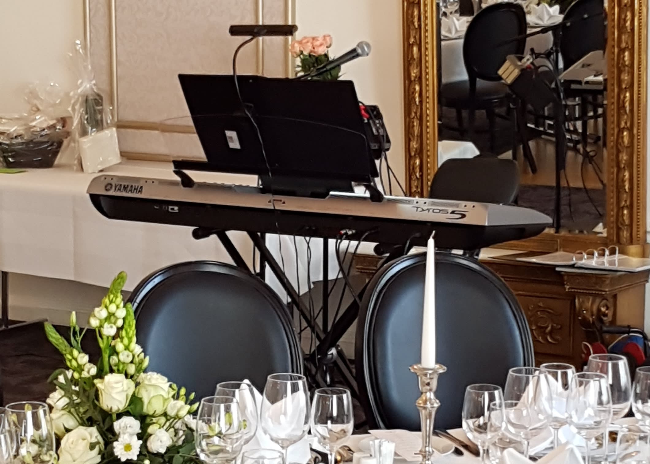 Spiller på Tyros 5 Keyboard eller Roland RD-2000 (Rolands bedste stagepiano) - afhænger lidt af typen af arrangement, eller jeg kan spille på det instrument som er på stedet hvis det er et godt klaver.