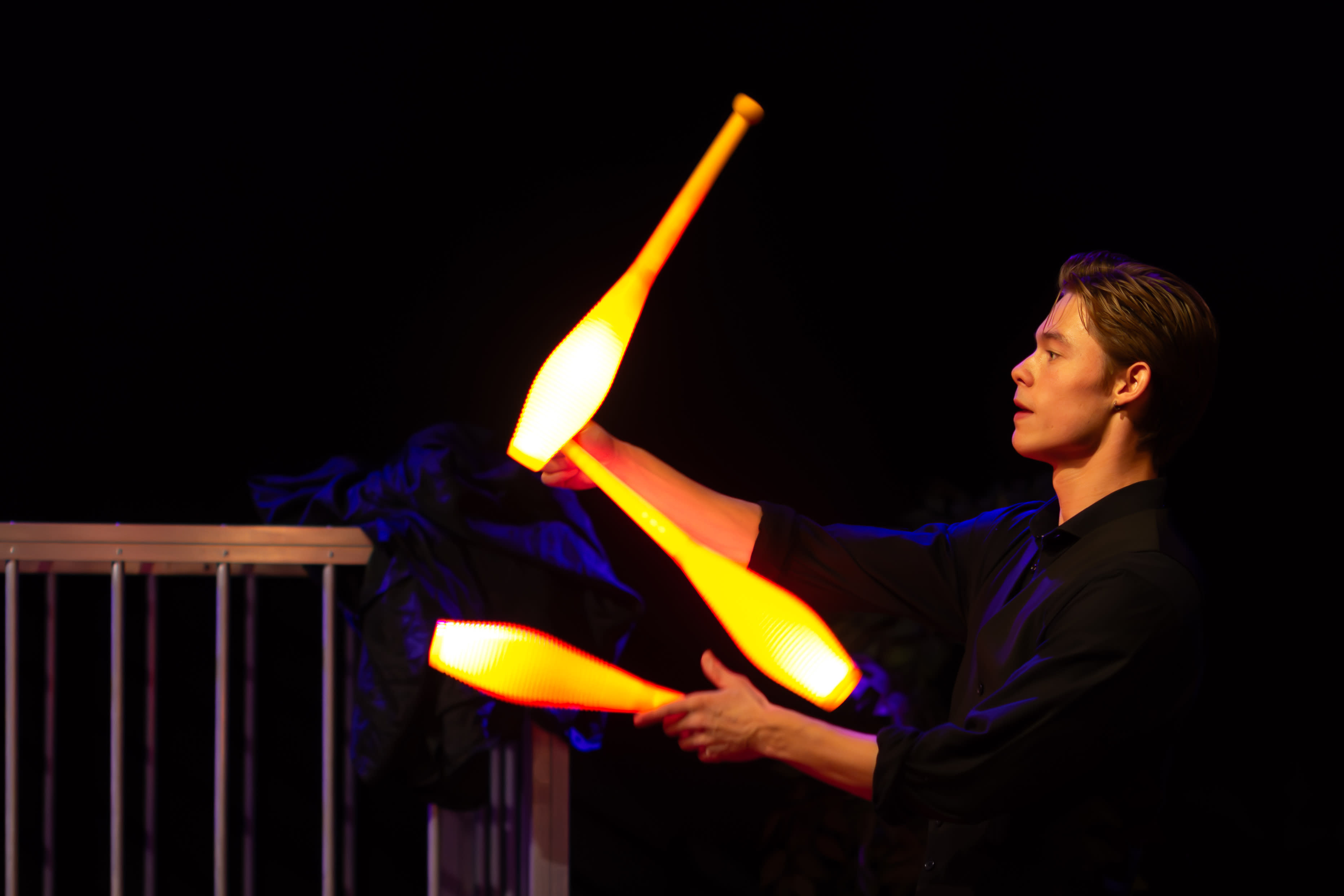 Showet indeholder en flot kombination af comedy jonglering, interaktion med publikum, ildshow og imponerende teknisk kunnen! Jonathan optræder altid med et glimt i øjet og en vittighed i ærmet. Uanset om det er en firmafest, konfirmation, fødselsdag eller et andet festligt arrangement, er dette show garanti for at løfte stemningen og skabe minder, der varer ved.