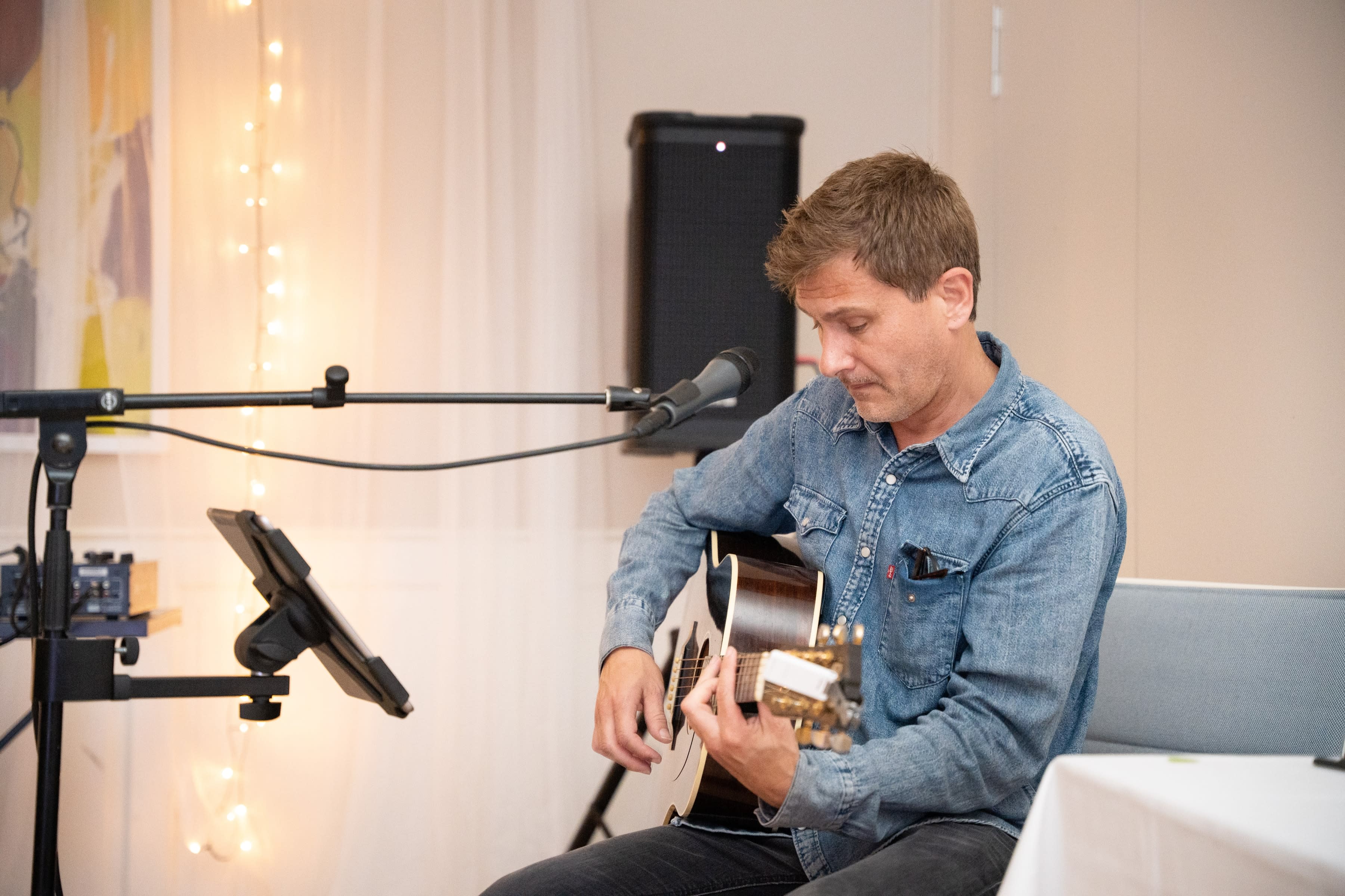 Kasper sørgede for super hyggelig stemning, dejligt musikvalg, med god stemme og super guitarspil. Han balancerer fint at være i centrum, men alligevel i baggrunden, så der er plads til snak og hygge samtidig. Mange gæster sang med og spurgte om han ikke blev lidt længere, hvilket må være den bedste anbefaling.