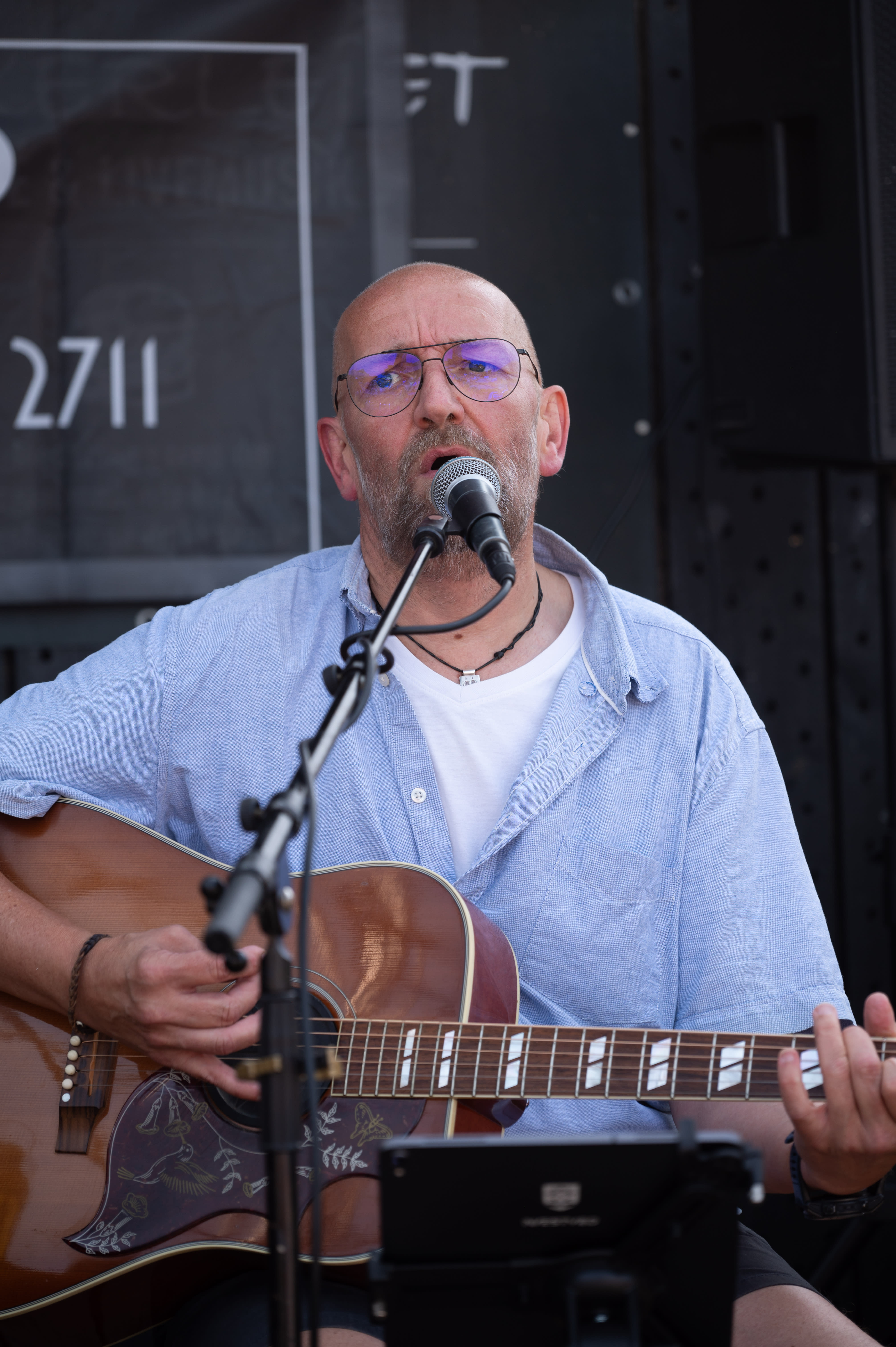Klaus leverer stilsikkkert en omgang blandede bolsjer med hits fra 70’erne og frem til i dag. Sangene akkompagneres af akk. guitar, mens han spiller fodtrommer.