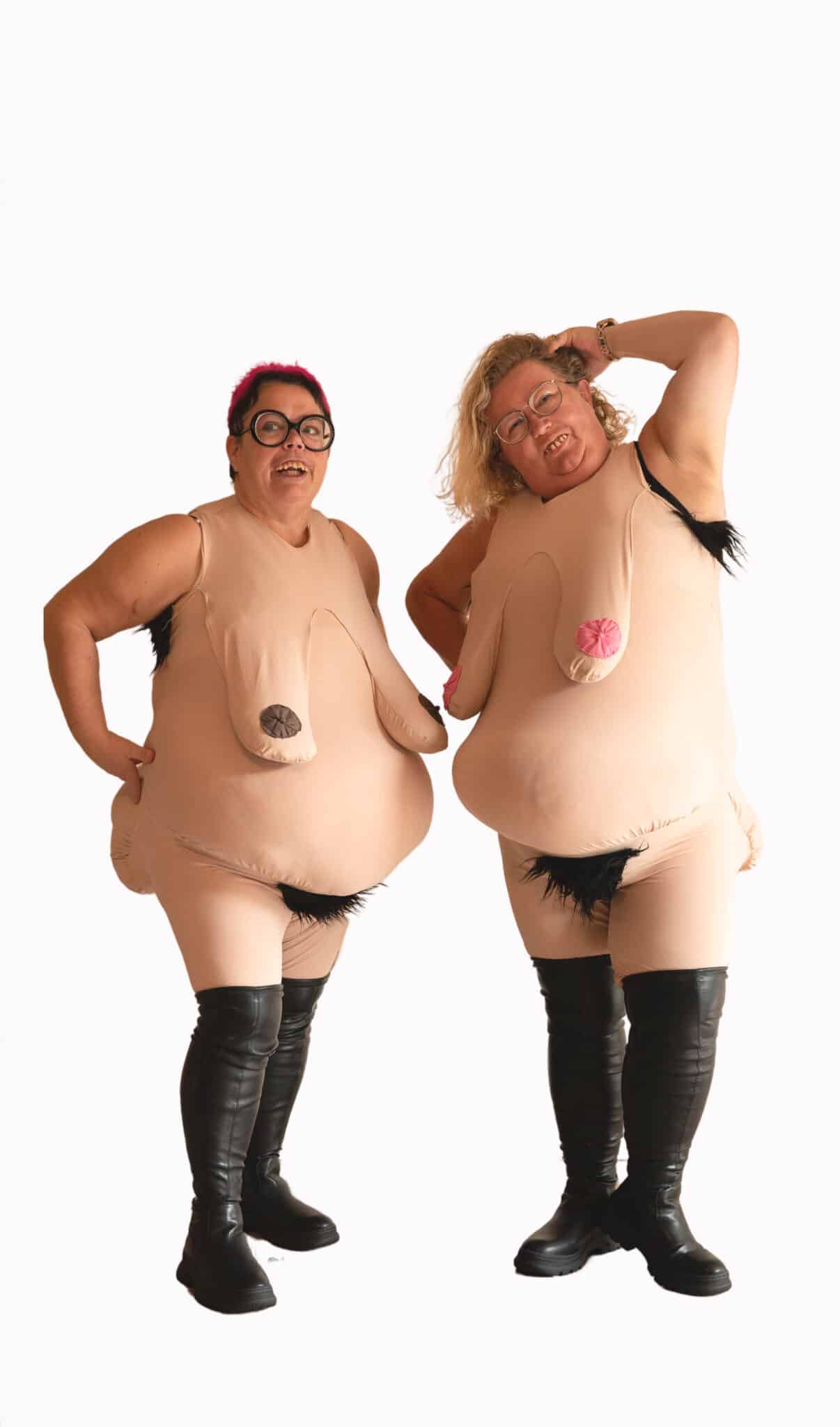 Når først de er kommet igang er de slet ikke til at stoppe og nu bliver det for alvor sjovt når festens hovedperson bliver hevet ud på en stol på gulvet og skal finde en grimasse der kan passe mens de 2 frodige damer smider tøjet - stykke for stykke - til de til sidst står med r... og p.... bare.