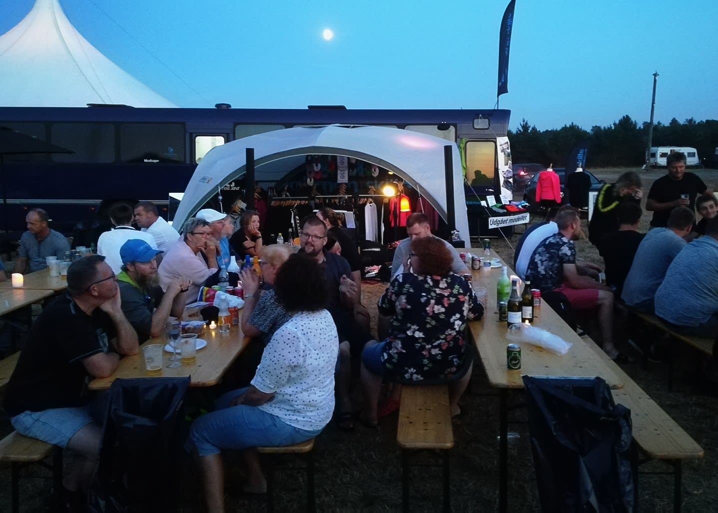 Var klar til aftalt tid med to opstillinger: Èn under åben himmel ifm. velkomst osv. og én i festlokalet.
