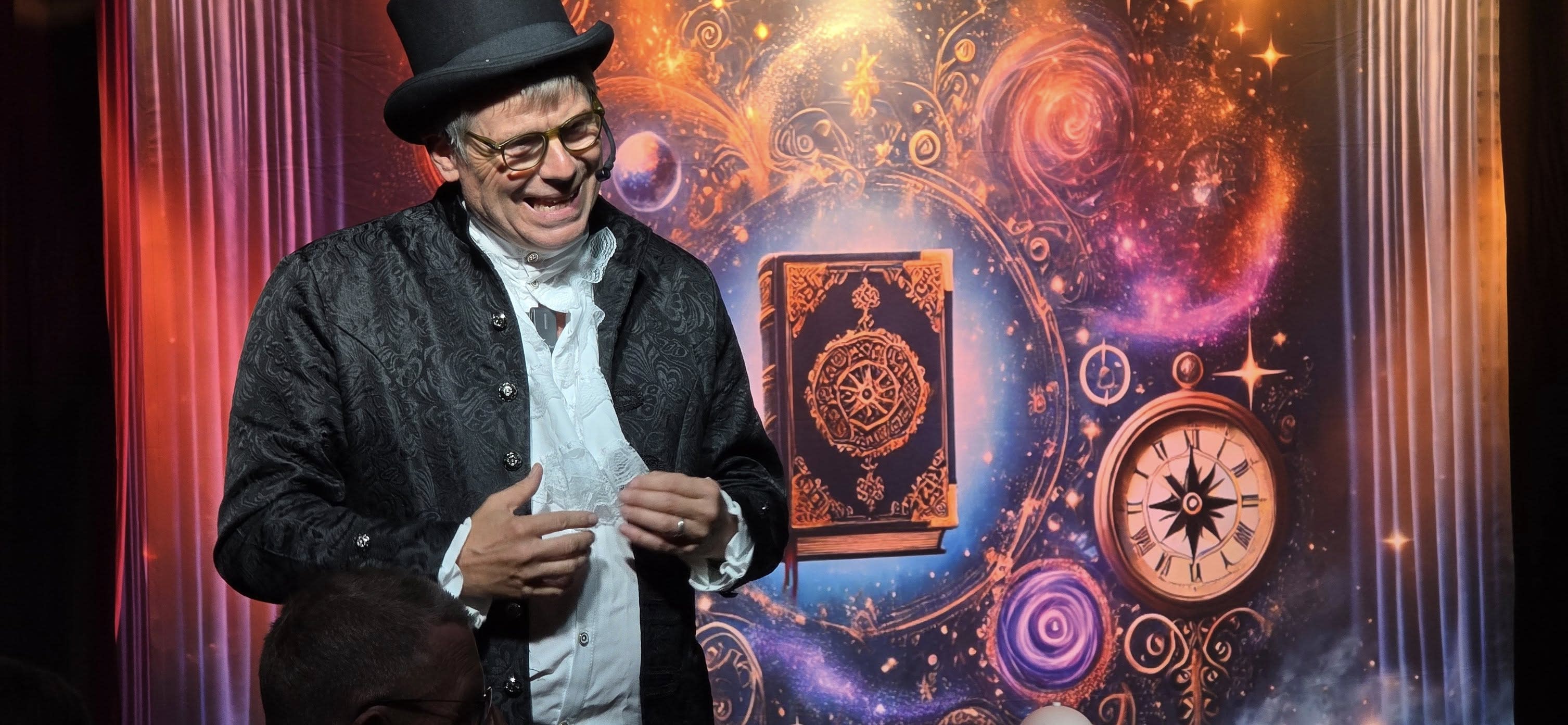 Med en aura af en forfatter fra gamle eventyr bringer jeg magien til live – ikke kun gennem ord, men også gennem uforklarlige tricks, tankelæsning og overraskende illusioner.