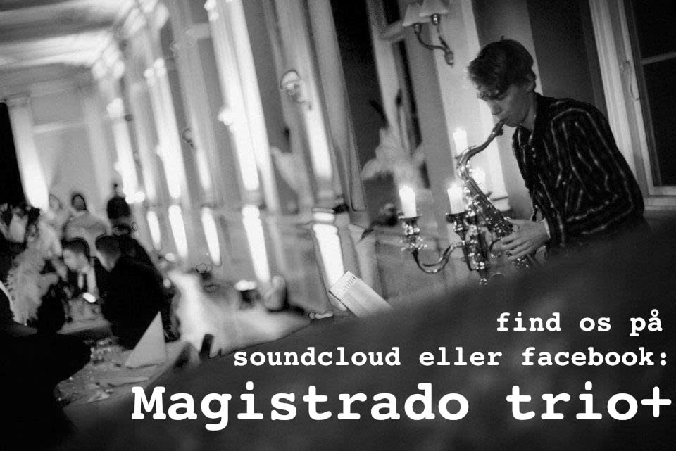 Magistrado Trio spiller lækker, lyttevenlig musik i et enkelt setup: Rasmus (saxofon) Rasmus (trommer) og Richard (klaver). Trioen spænder vidt fra gamle jazzstandards til nye popmelodier og filmtemaer, som man kan nynne med på. De tre har spillet sammen til snart sagt alle tænkelige arrangementer bryllup, reception, julefrokost, konfirmation osv. De er alle aktive, alsidige musikere, uddannede på MGK og musikvidenskab, der mødes i musikken for at spille i den hyggelige stemnings tjeneste.