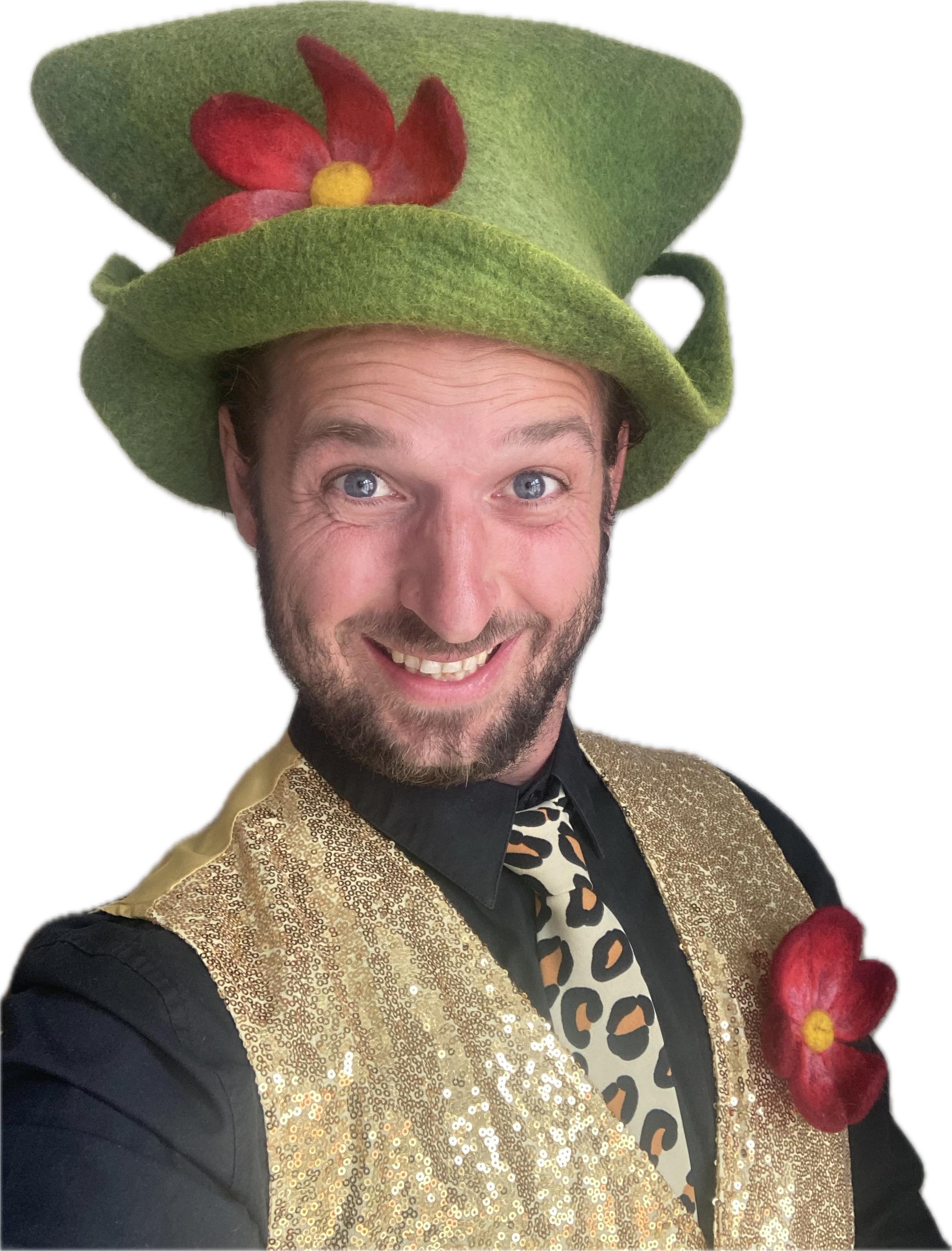 Han underholder med en vifte af muligheder, nok mest kendt for sine fortælleshows, ballonworkshops og ballondyr.