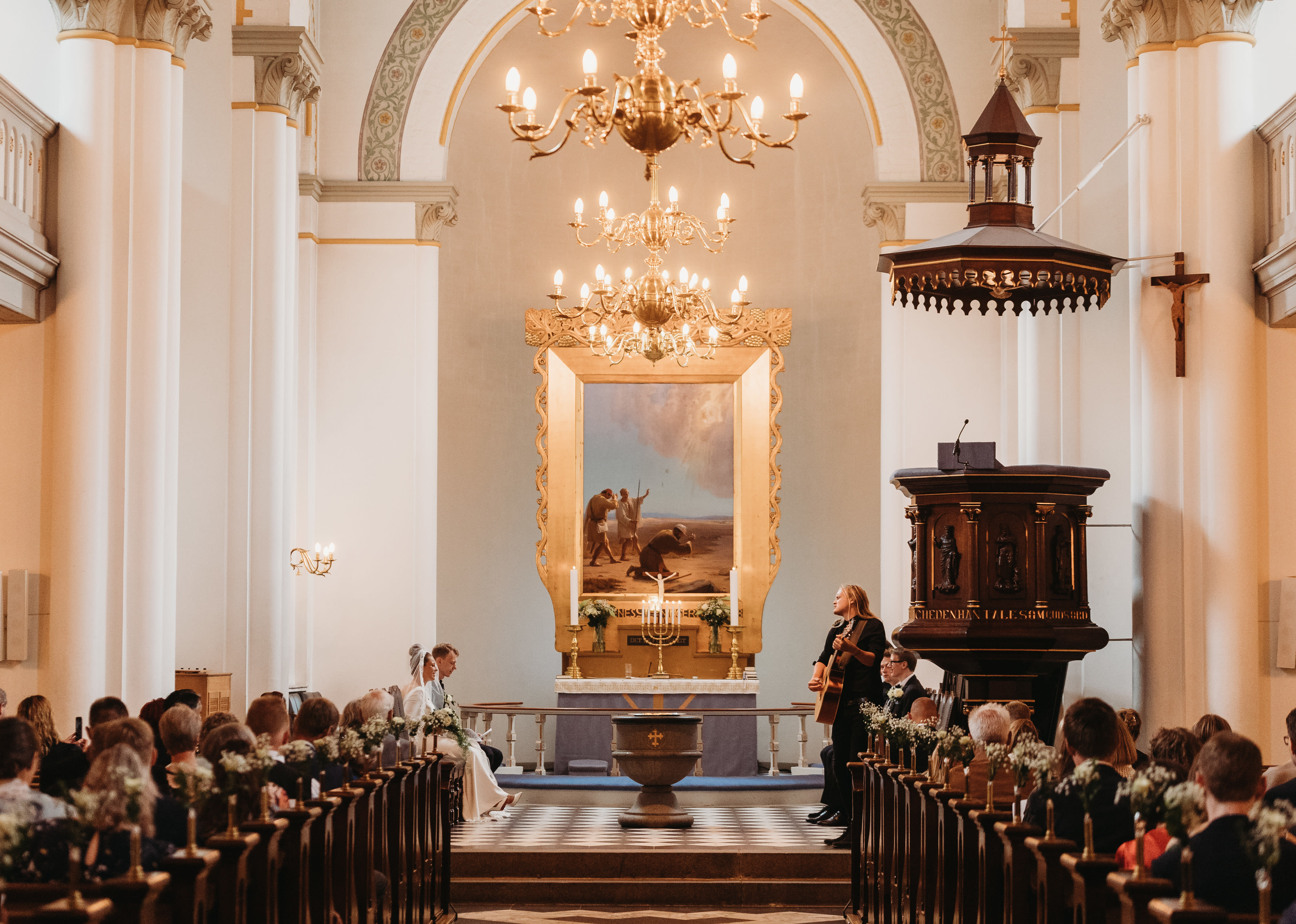 Martin med hans guitar og sang, var en overraskelse til min mand i kirken. Og kan ikke sige andet end, hvis man ikke allerede græd til vielsen, så gjorde man det, da Martin satte igang. En fantastisk og helt uforglemmelig oplevelse og fantastisk service og samarbejde fra start til slut.