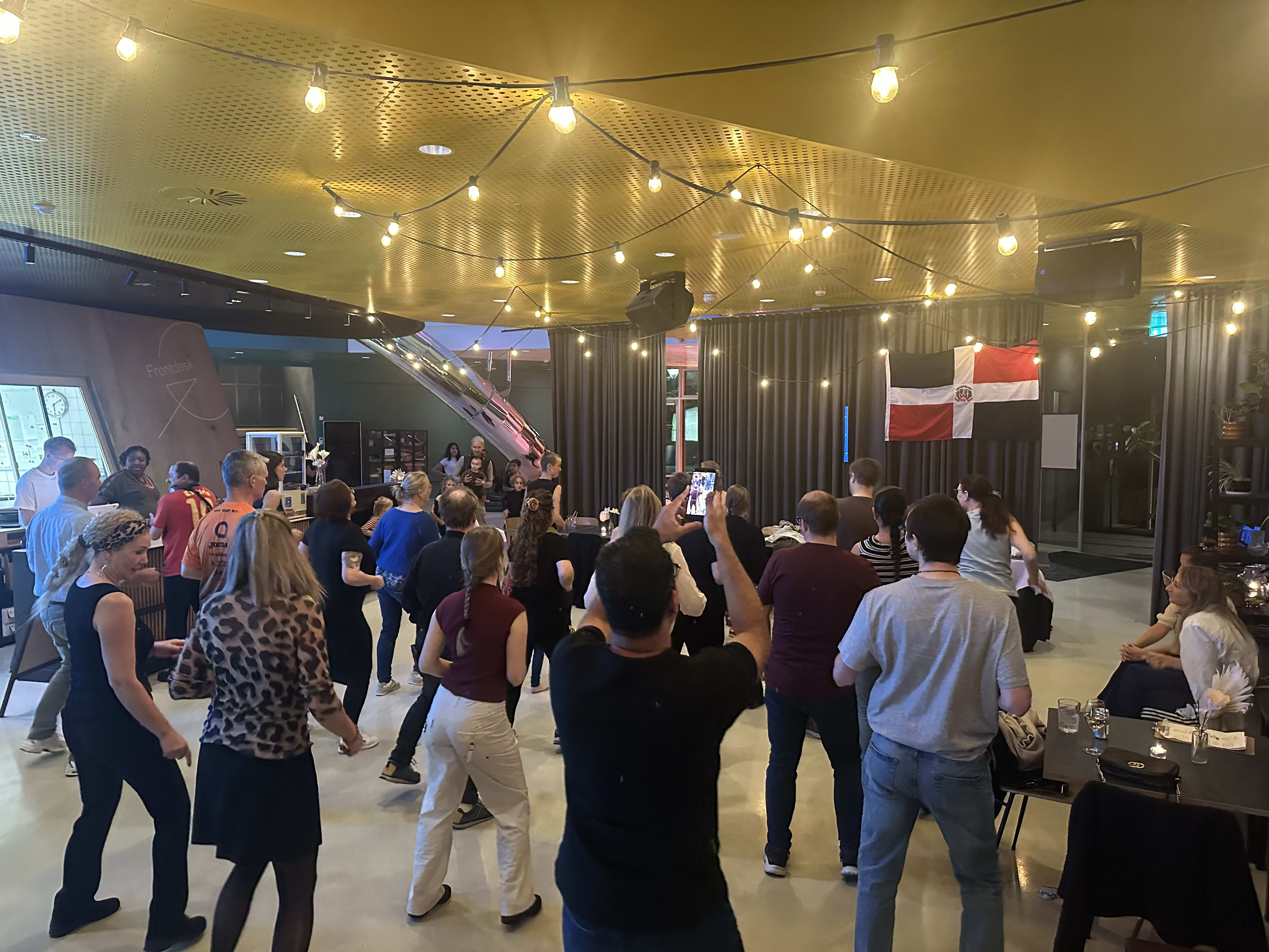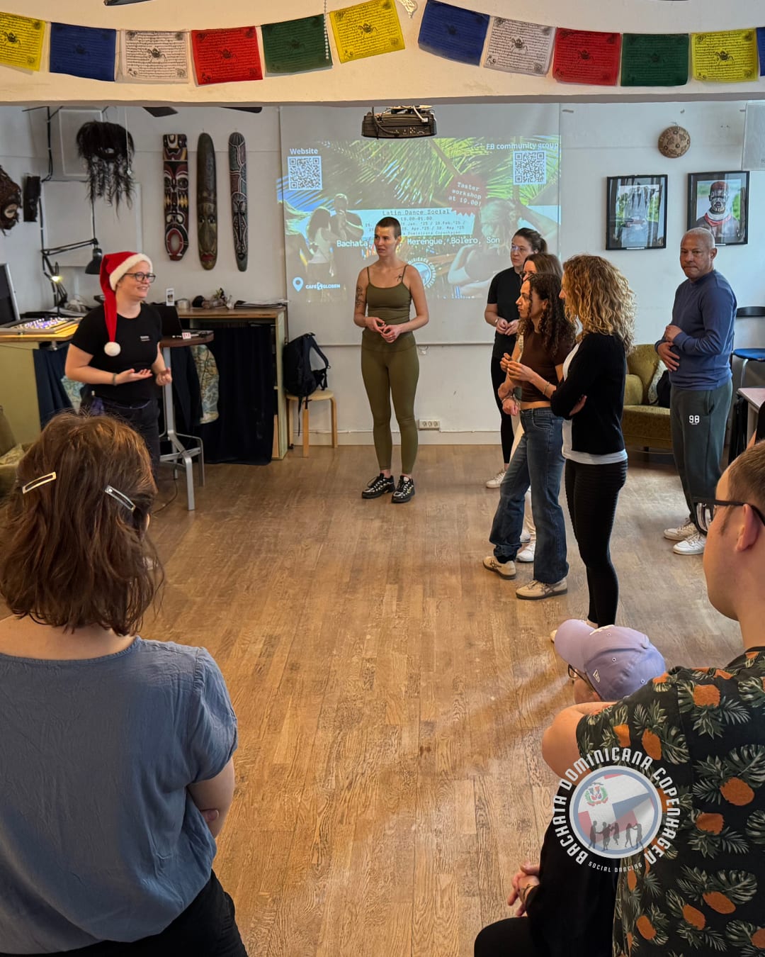 Rytmer fra den dominikanske republik, enkle dansetrin, hvor alle kan være med, sjov undervisning og glade gæster.