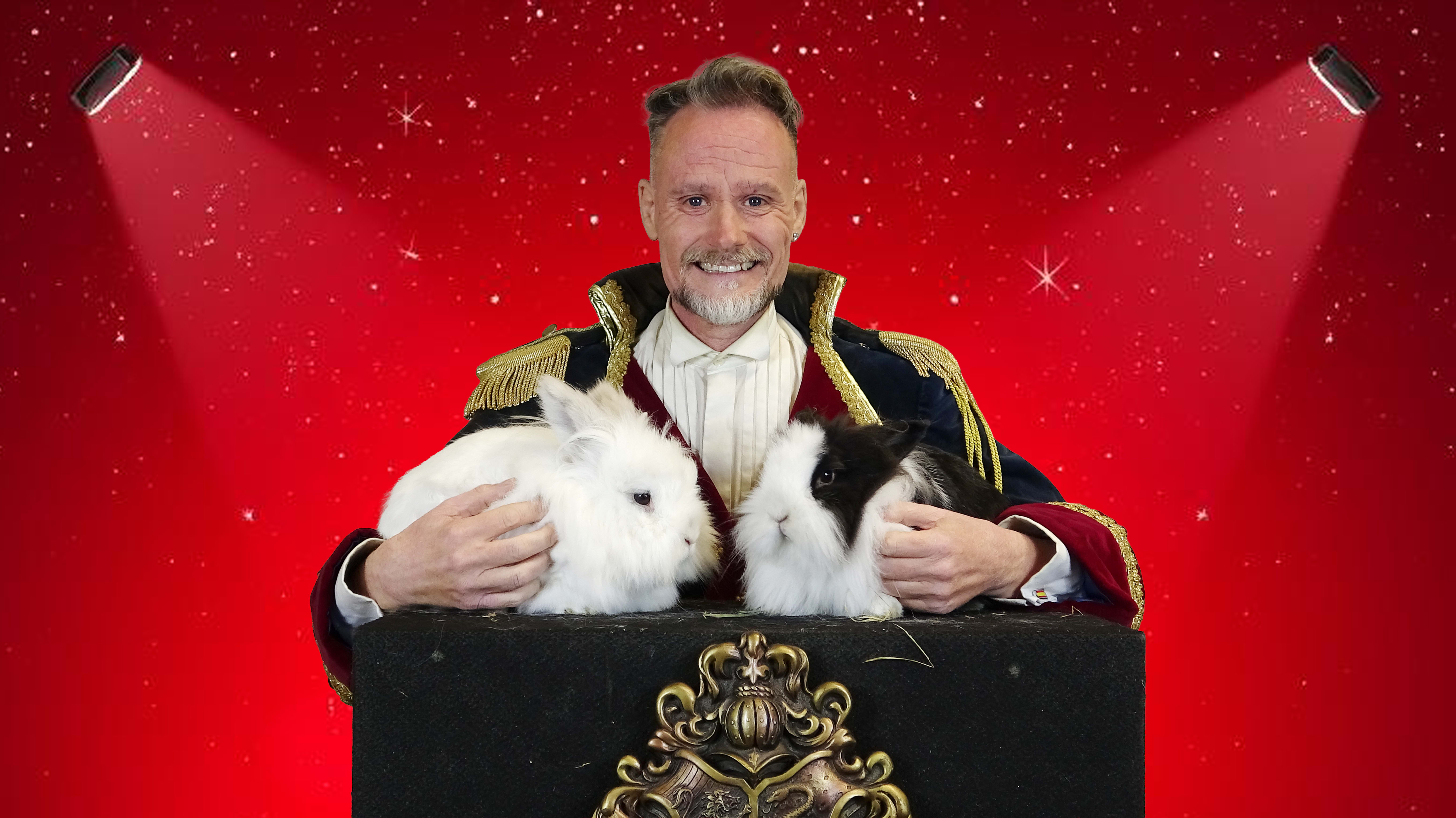 Der er også mulighed for at vælge et trylleshow med levende duer og hvide kaniner. Efter showet kan børnene komme op og prøve at holde en due eller ae kaninerne.