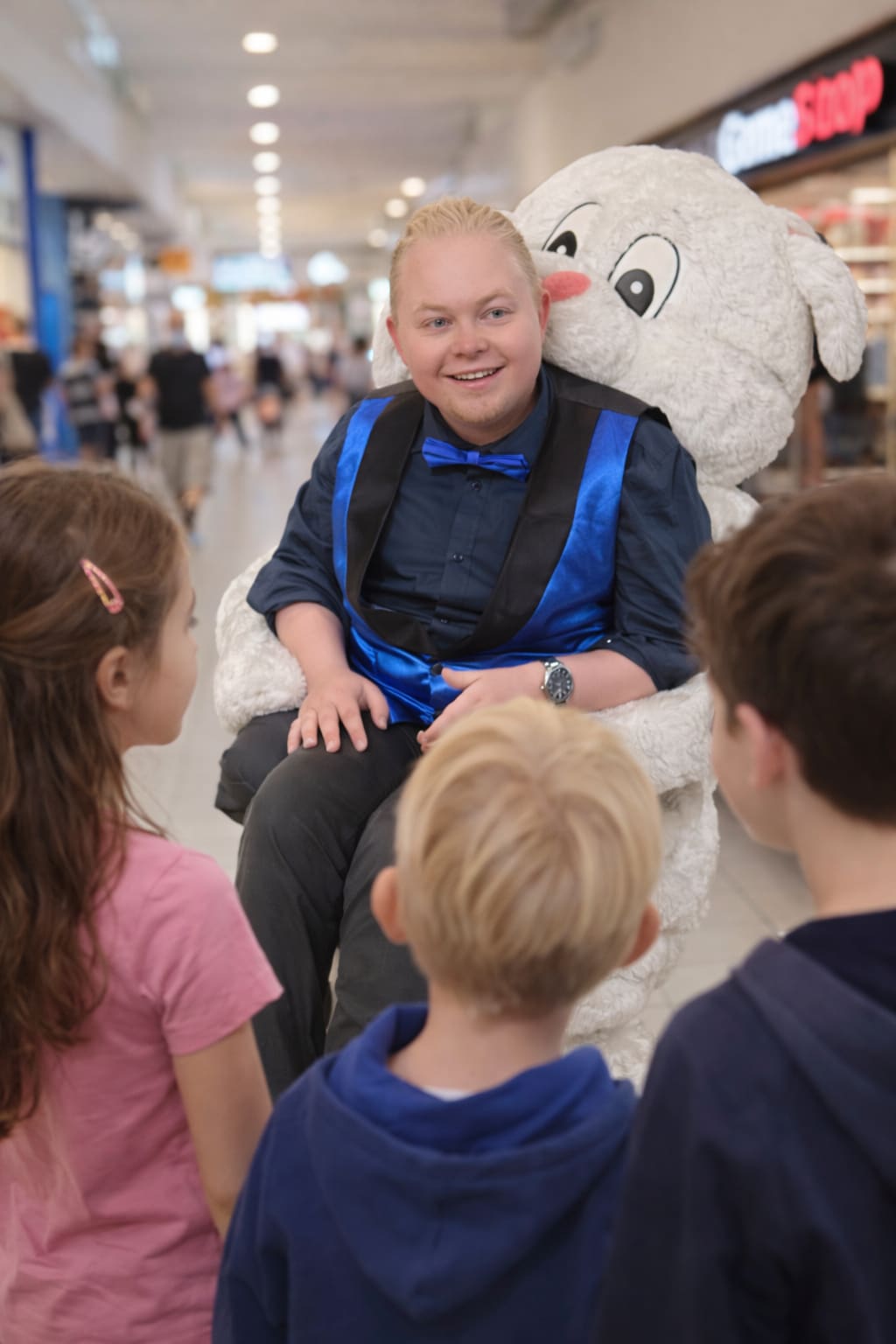 Kasper fortryller med imponerende close-up magi og lynhurtige tricks, mens Oskar Kanin charmerer alle med sit kærlige væsen, store kram og skøre påfund. Sammen leverer de øjeblikke, der ikke bare underholder, men også skaber minder – og masser af grin! 😄💫