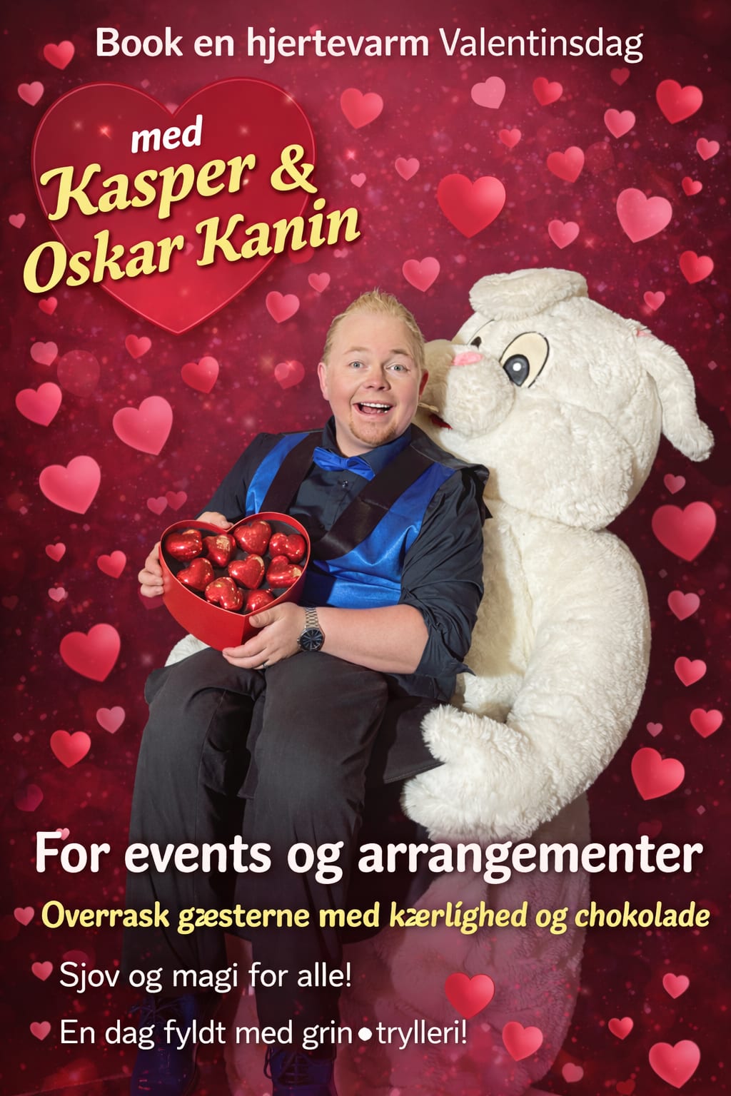 Kasper og Oskar Kanin står klar til at gøre dit arrangement uforglemmeligt – fyldt med energi, nærvær, magi og grin! 🎩✨🐰