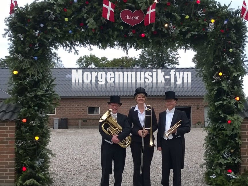Skal du bruge festlig musik til højtidsdagen: Kobber-, sølv- eller guldbryllup, diamant eller krondiamantbryllup så kontakt morgentrioen. Vi er tre friske musikere, fordi en trio klinger dobbelt så godt som en duet. Vi spiller i høj hat og kjole og hvidt, og kvaliteten er i top. Sangblade medbringes og vort righoldige repertoire tilpasses enhver situation såvel udendørs som indendørs. Rød løber efter aftale.