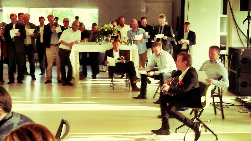 Den afsluttende finale er, at en sang skrevet specielt til jeres virksomhed dukker op på en magisk og overraskende måde. Jeg fremfører sangen på guitar, og alle der har lyst synger med.