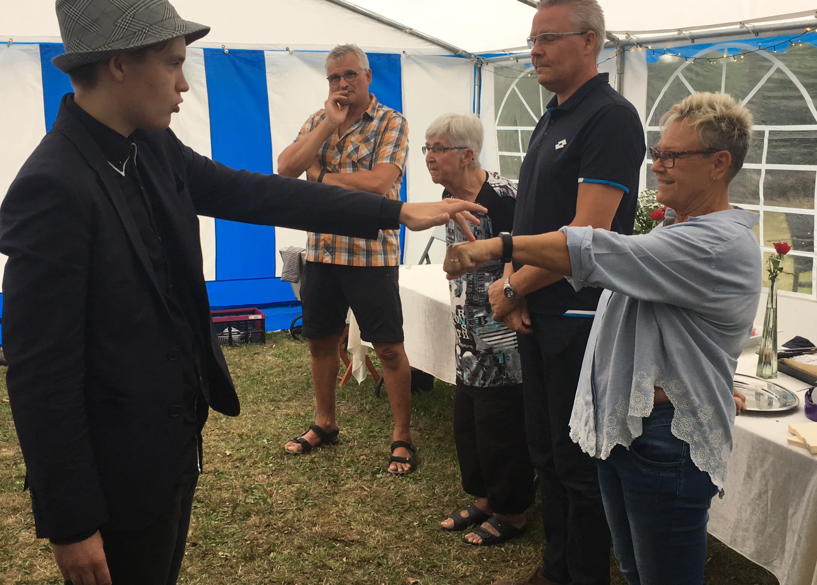 Nicklas var virkelig inspirerende og hele hans show var fascinerende. Alder aldersgrupper var repræsenteret til festen, og alle var fulde af forundring. Nicklas inddragede gæsterne i et stort omfang, så alle følte at de var med og blev snydt 😊