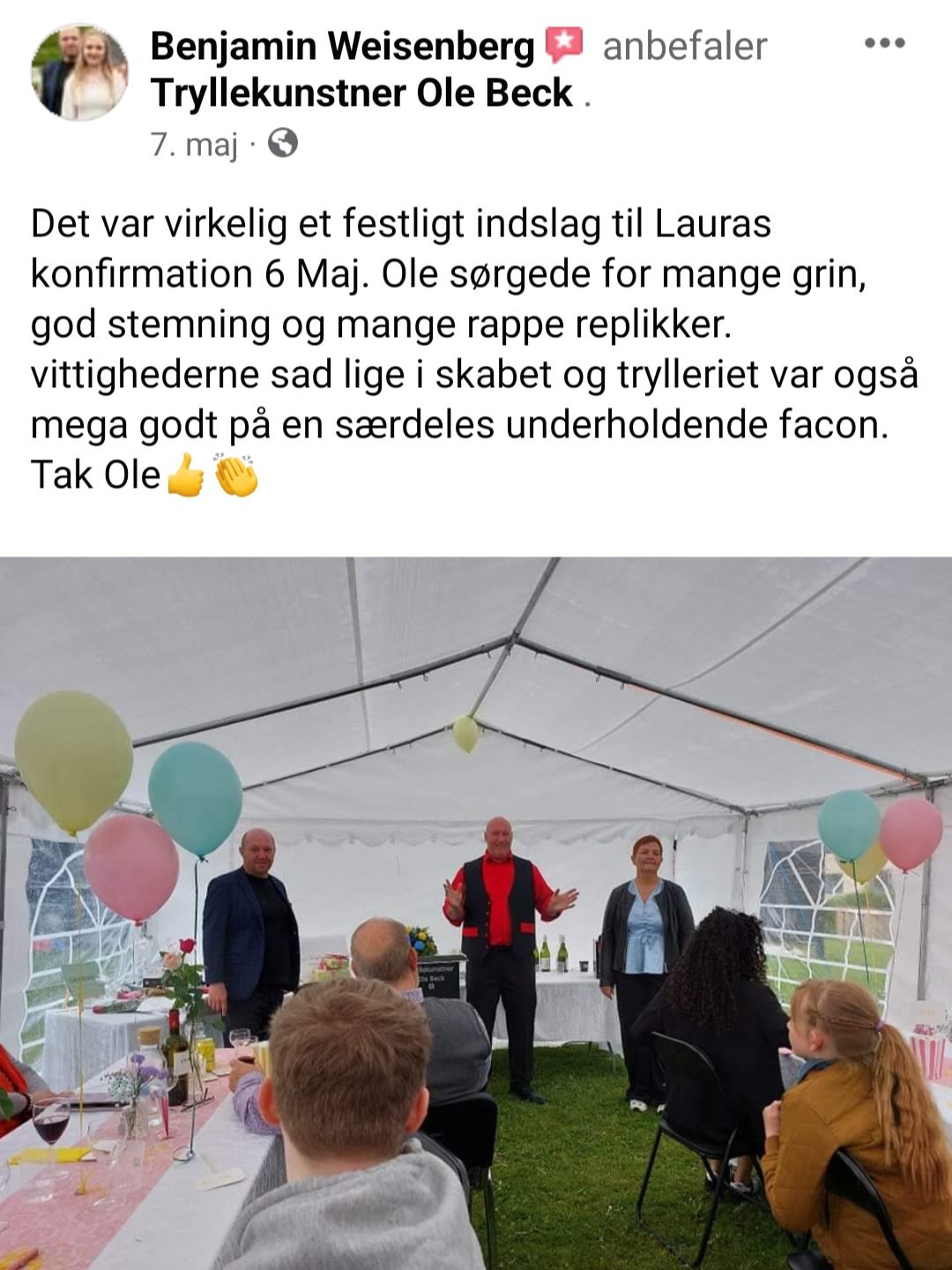 Ole gør det rigtig godt. Vi har brugt Ole til to x konfirmationer, mest for børnenes skyld, men hans trylleshow får selv voksne til at klø sig i nakken, hans jokes var så "slemme", at vi skulle dele tørre bukser ud bag efter 😉