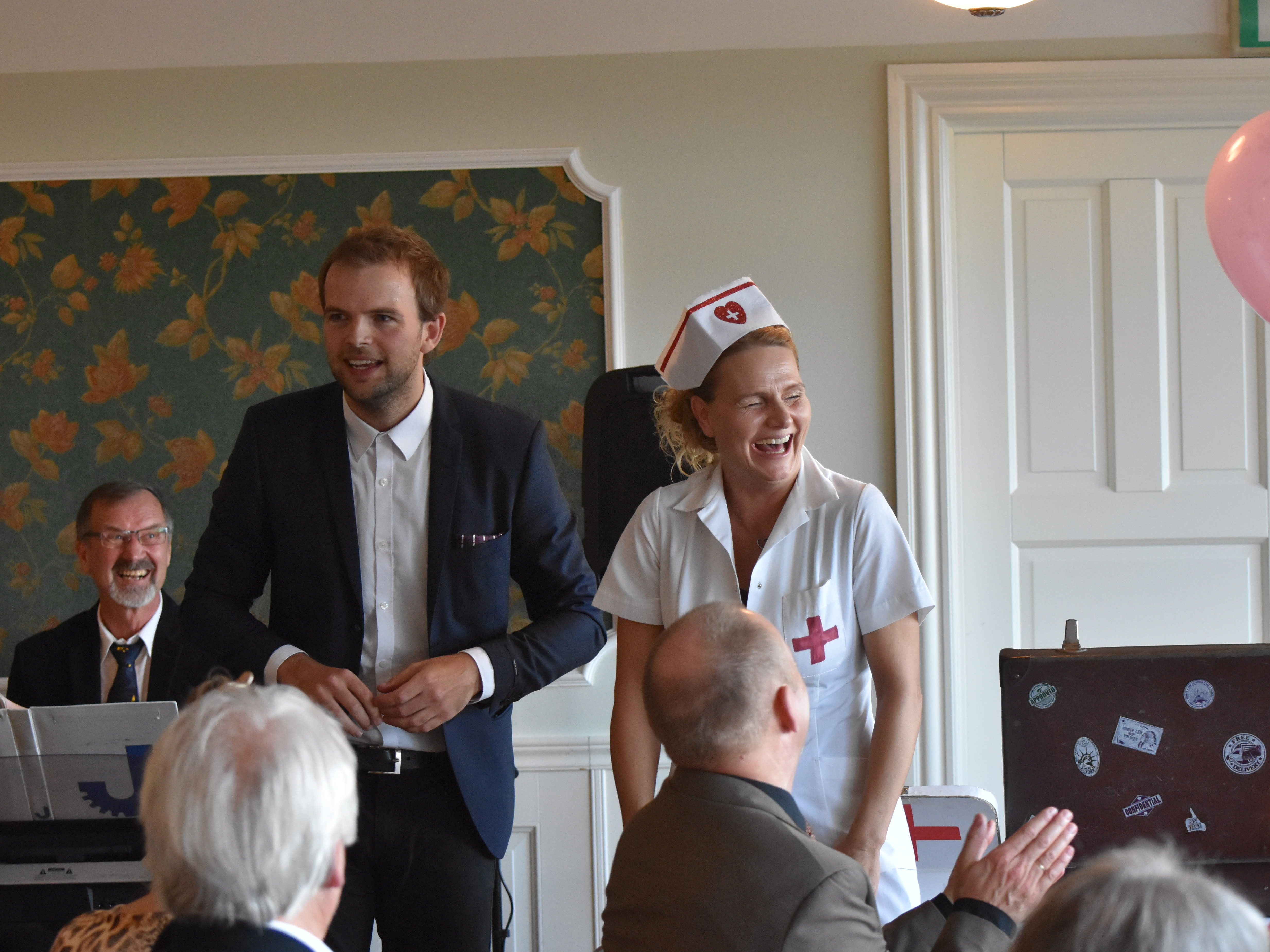 Han fik alle gæster med (40 stk), og folk var flade af grin under og efter arr.