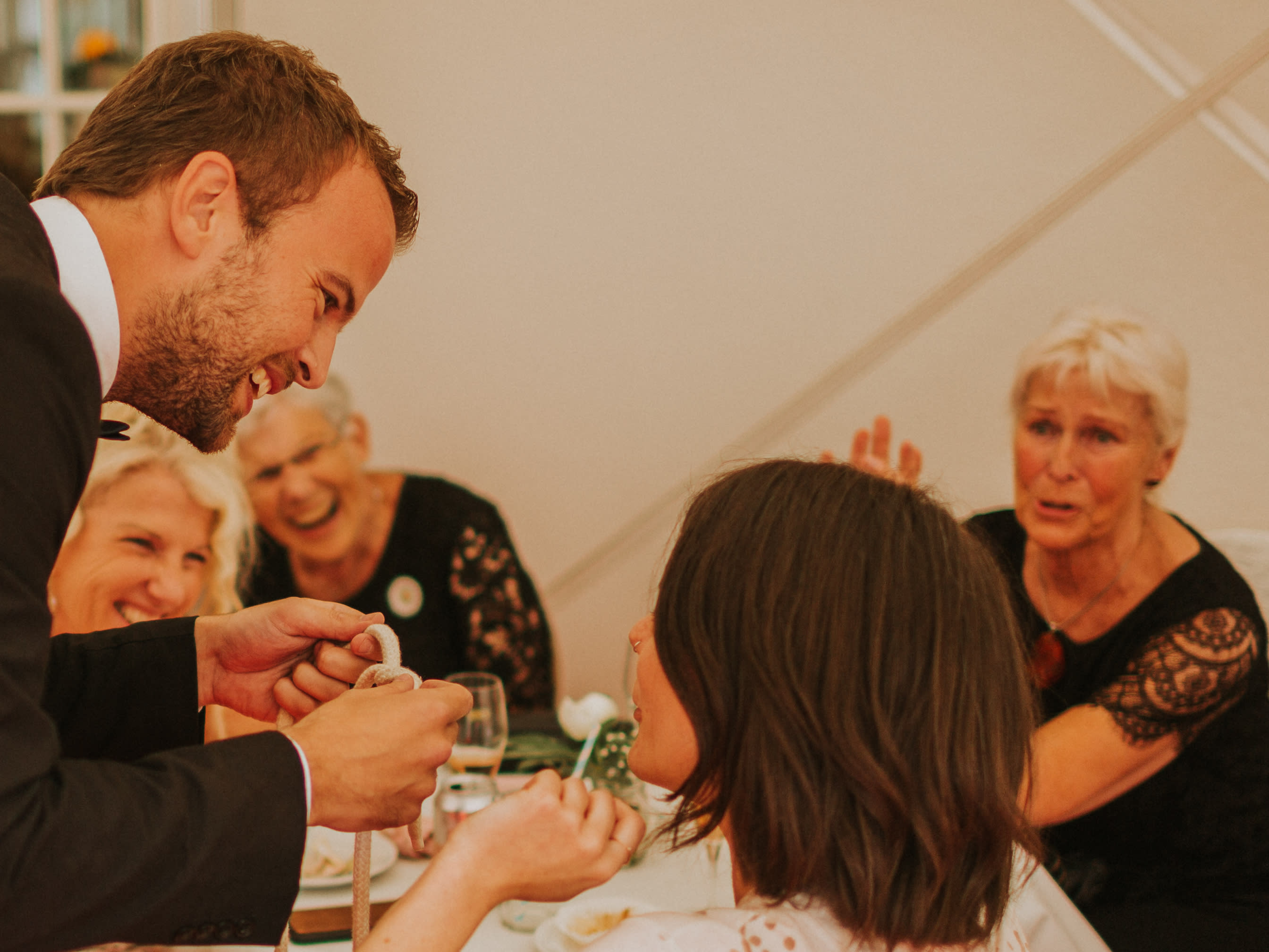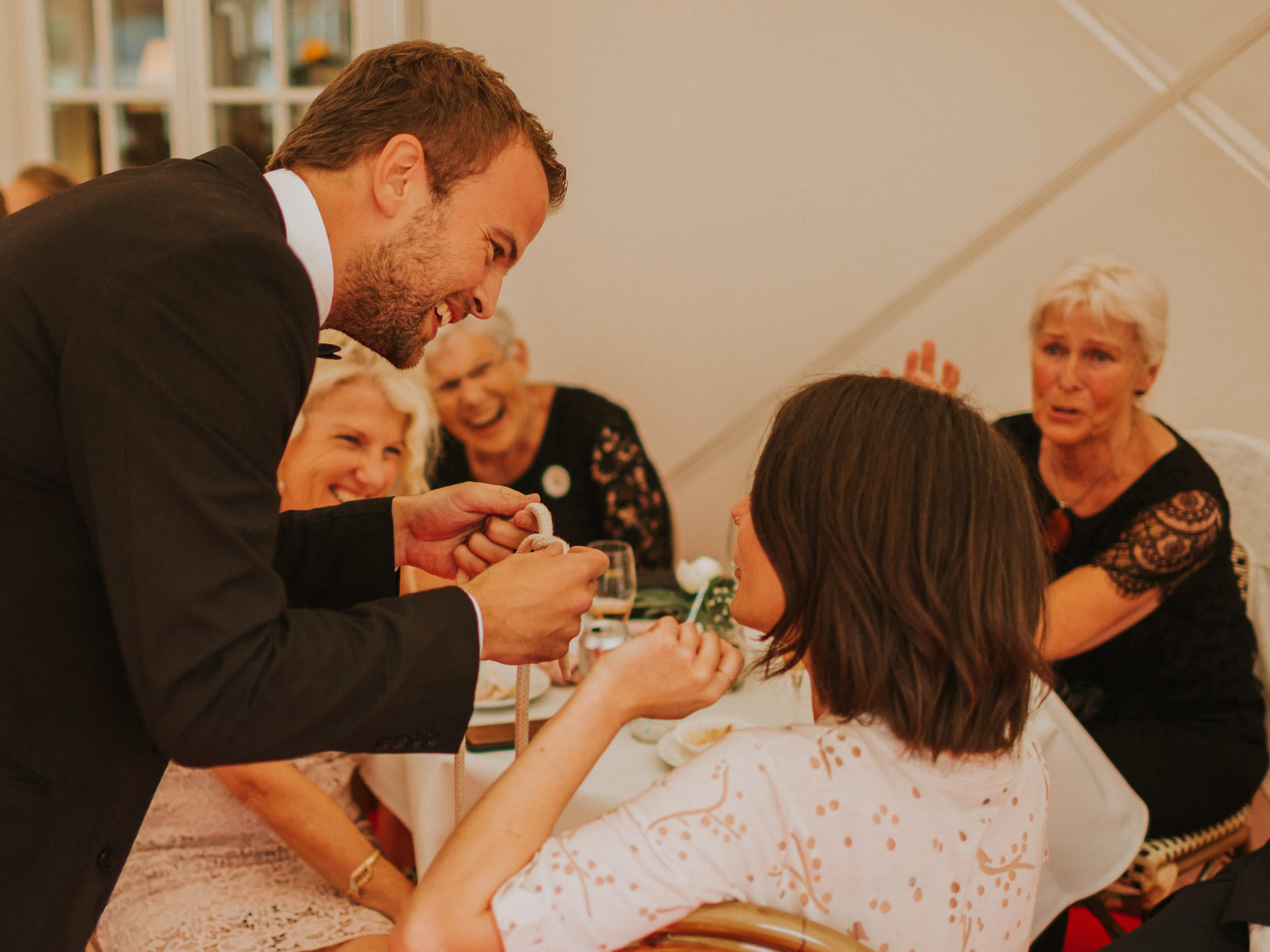 3. Giver festen energi. Jeg løfter energien i lokalet, så der efterfølgende bliver grinet og talt mere.