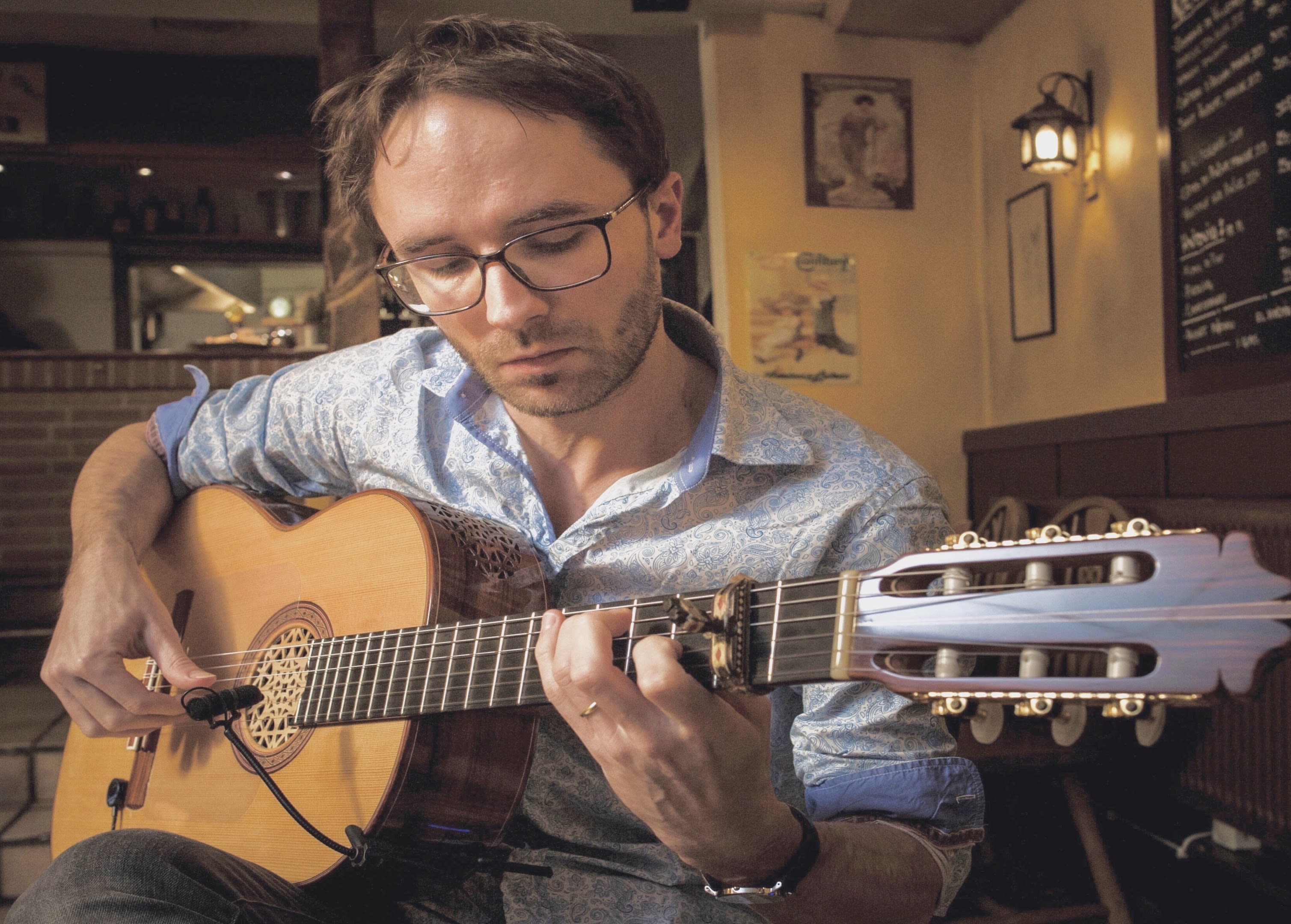 Stemningsfuldt og intimt guitarspil ved guitarist Peter Uldahl med kendte klassiske stykker, romantiske ballader, varm og eksotisk musik fra Spanien og Latinamerika og ikke mindst gode gamle jazznumre.