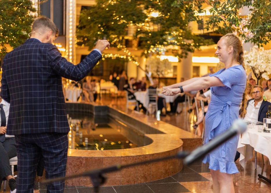 Vi havde besøg af Karsten under vores gallamiddag, og han fangede alle hos publikum.
