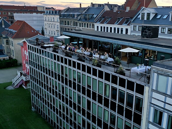 På tagterrassen er der panoramaudsigt over Københavns smukke bygninger, hvor I vil kunne se solnedgangen over byens tage og den bedste udsigt til skyline når mørket falder på. Desuden vil I her sidde på første række ud til Søerne. Terrassen er ideel til fejringen af en bred vifte af arrangementer og begivenheder, hvor det særligt er i sommerhalvåret I får ekstra valuta for pengene. Her er der plads til 40 spisende gæster samt 100 stående gæster. Spisning er også muligt ved stående gæster.