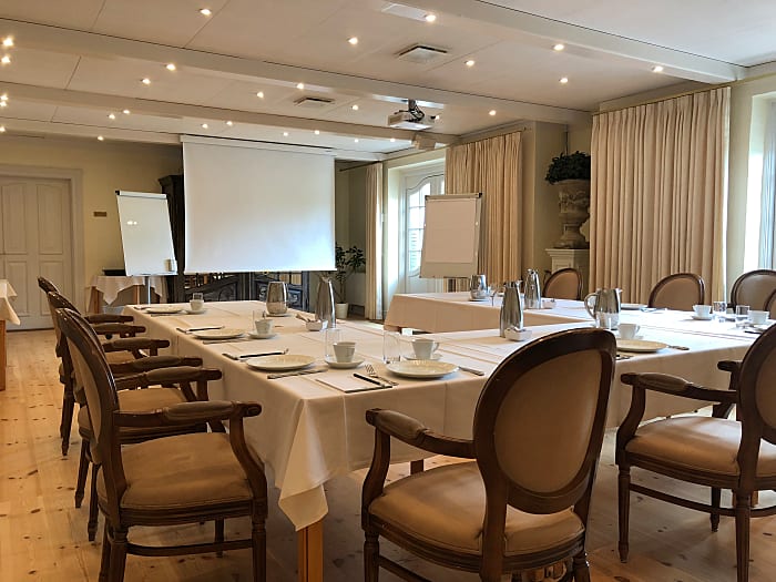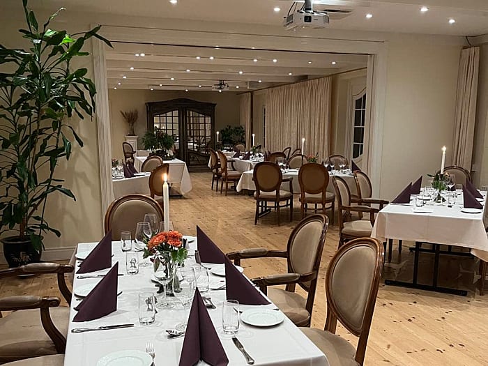 Krikanden er det mest eksklusive lokale på Munkebo Kro, perfekt til arbejdsrelaterede arrangementer. Lokalet har sin egen garderobe og toiletter samt en privat terrasse, der giver direkte adgang til den smukke have. Om sommeren er terrassen et ideelt sted til at byde deltagerne velkommen med en drink. Indretningen er præget af smukke, varme nuancer, der skaber en behagelig atmosfære. Vægmalerier dekorerer de store vægge og tilføjer en ekstra dimension til rummets elegance. Krikanden er et rummeligt lokale, der kan opdeles i to mindre enheder: Store Krikand og Lille Krikand. Desuden er lokalet udstyret med en projektor, perfekt til præsentationer, film og billeder.