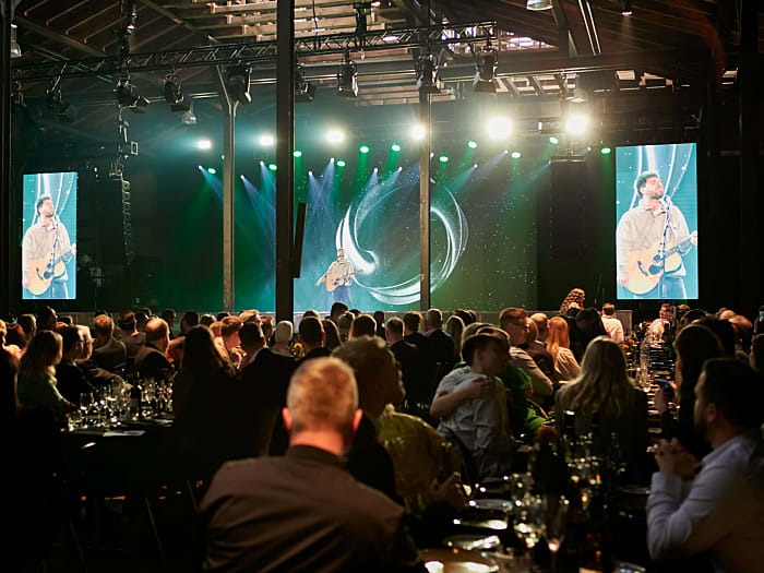 Lærred, Lydanlæg, Mikrofon, Projektor, Scene, Wifi